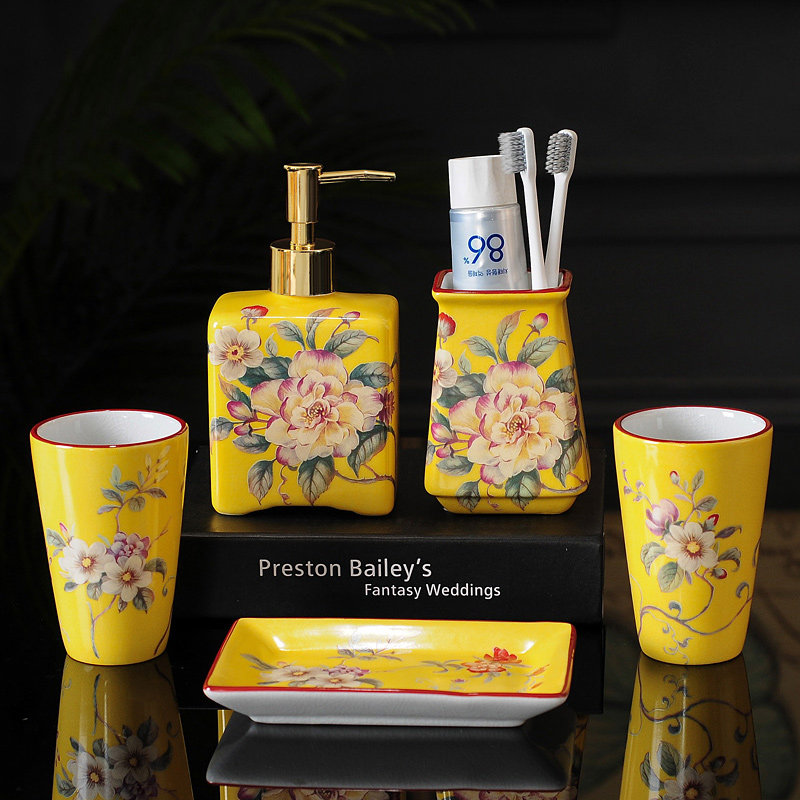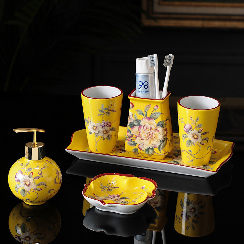 Керамический комплект для домашнего использования для отеля, ополаскиватель для рта, зубная щетка, мыло, мыльница