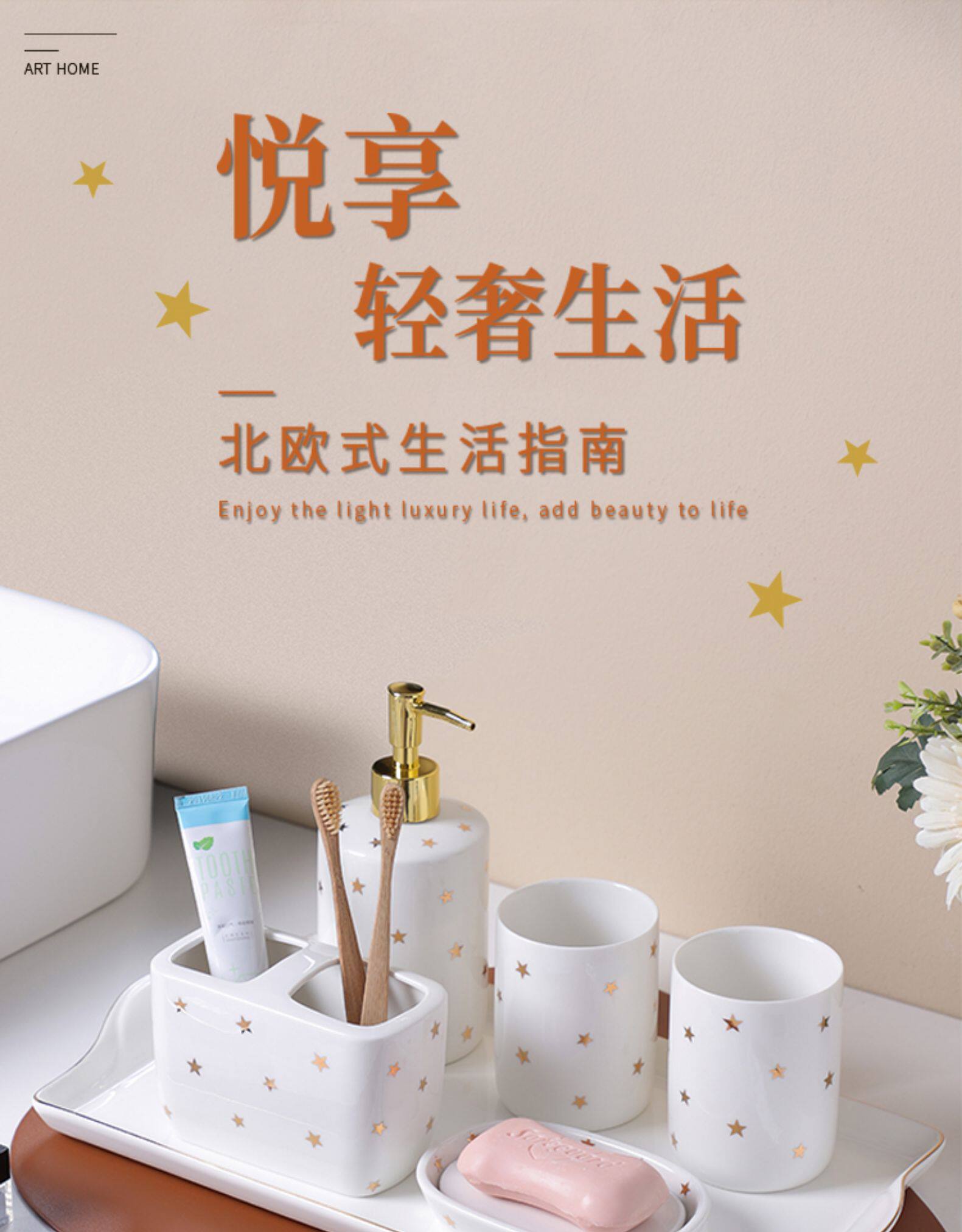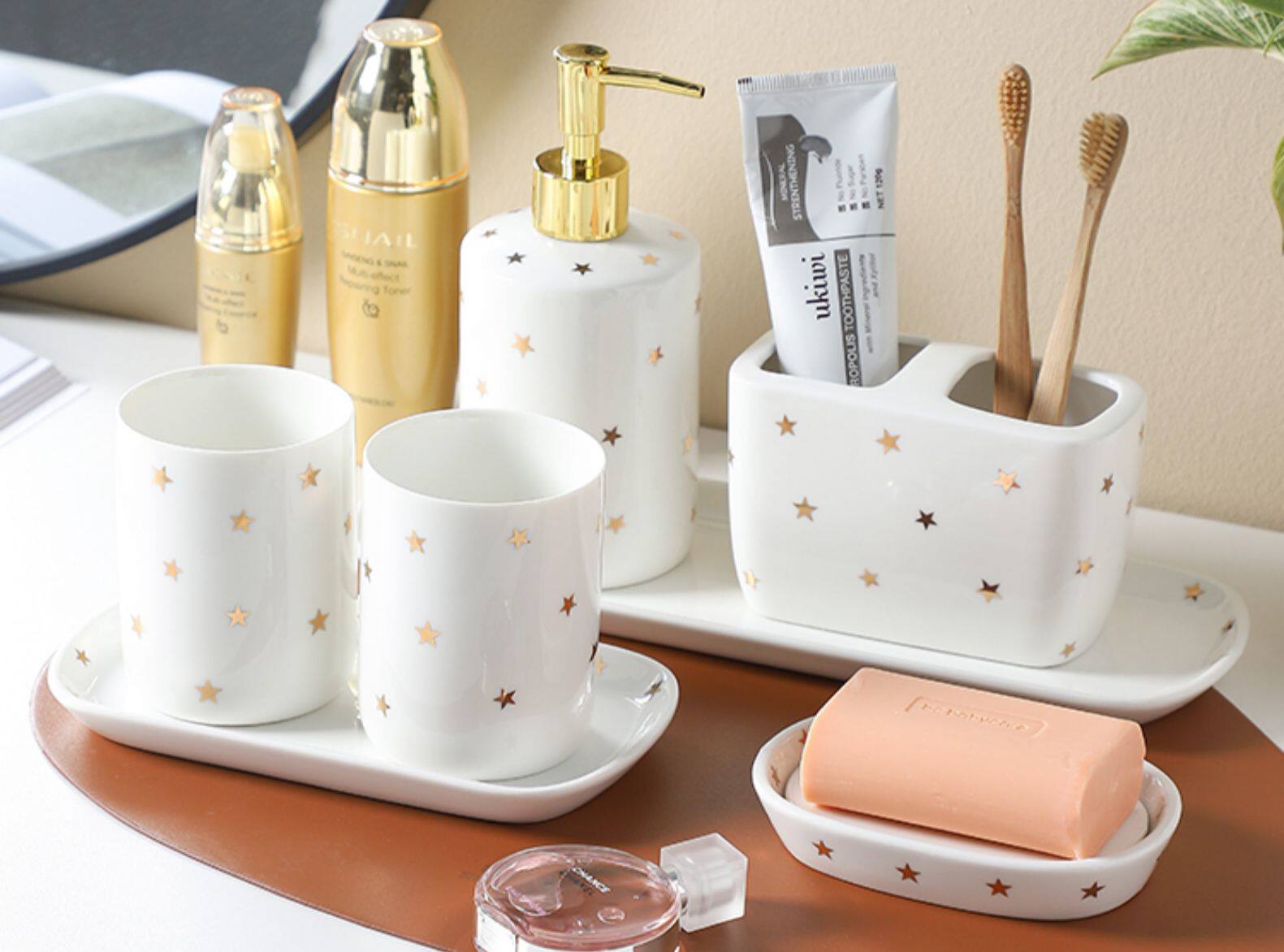 Керамический комплект, зубная щетка, ополаскиватель для рта, легкий роскошный стиль