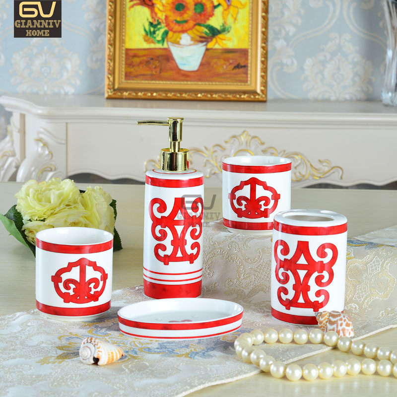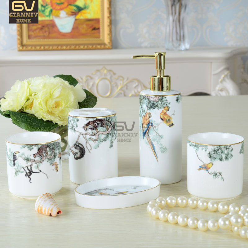 Европейский стиль лошадь -стиль керамическая ванная комната пять -части набор H Ванная комната 5 -Кузарка фарфоровая подарочная коробка туалета