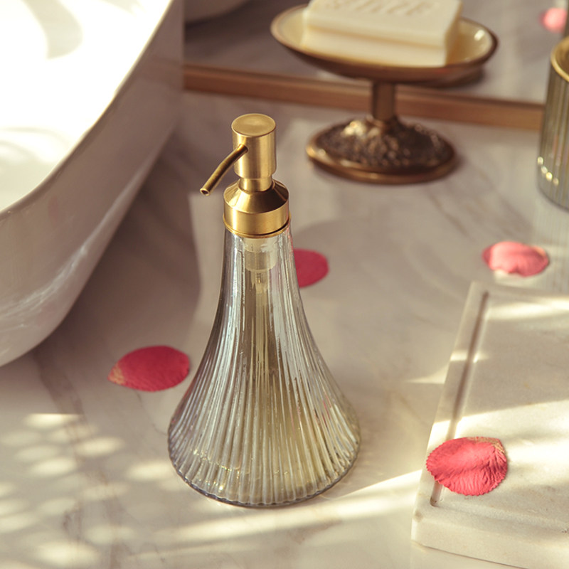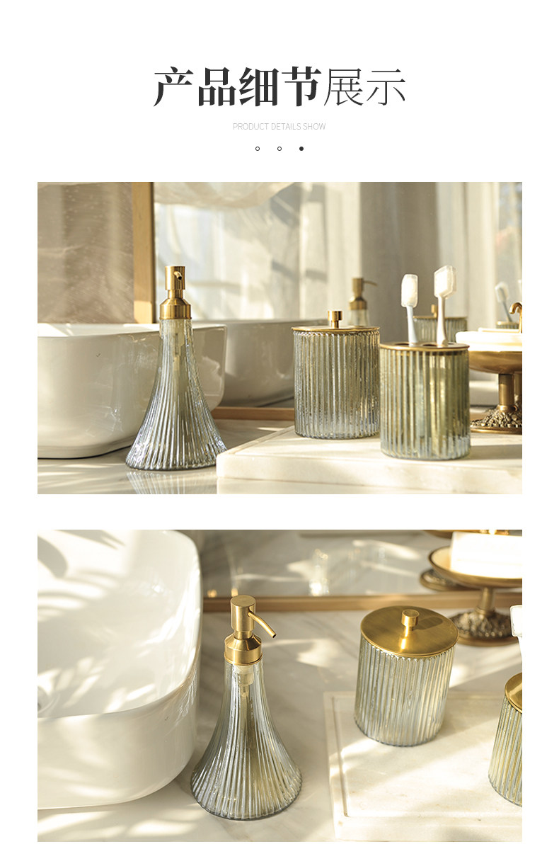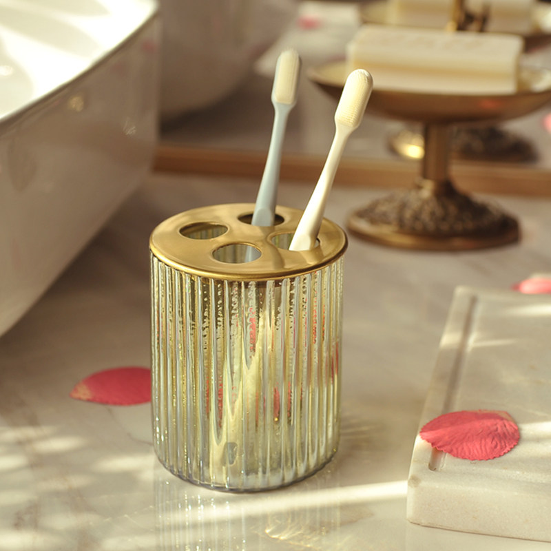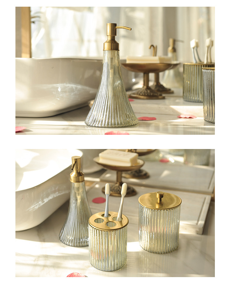 Ретро комплект, ополаскиватель для рта, зубная щетка, гель для душа, импортная латунная стеклянная тара, в американском стиле, легкий роскошный стиль