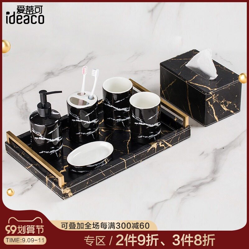 Мраморный керамический креативный комплект, ополаскиватель для рта, зубная щетка, легкий роскошный стиль, 5 шт