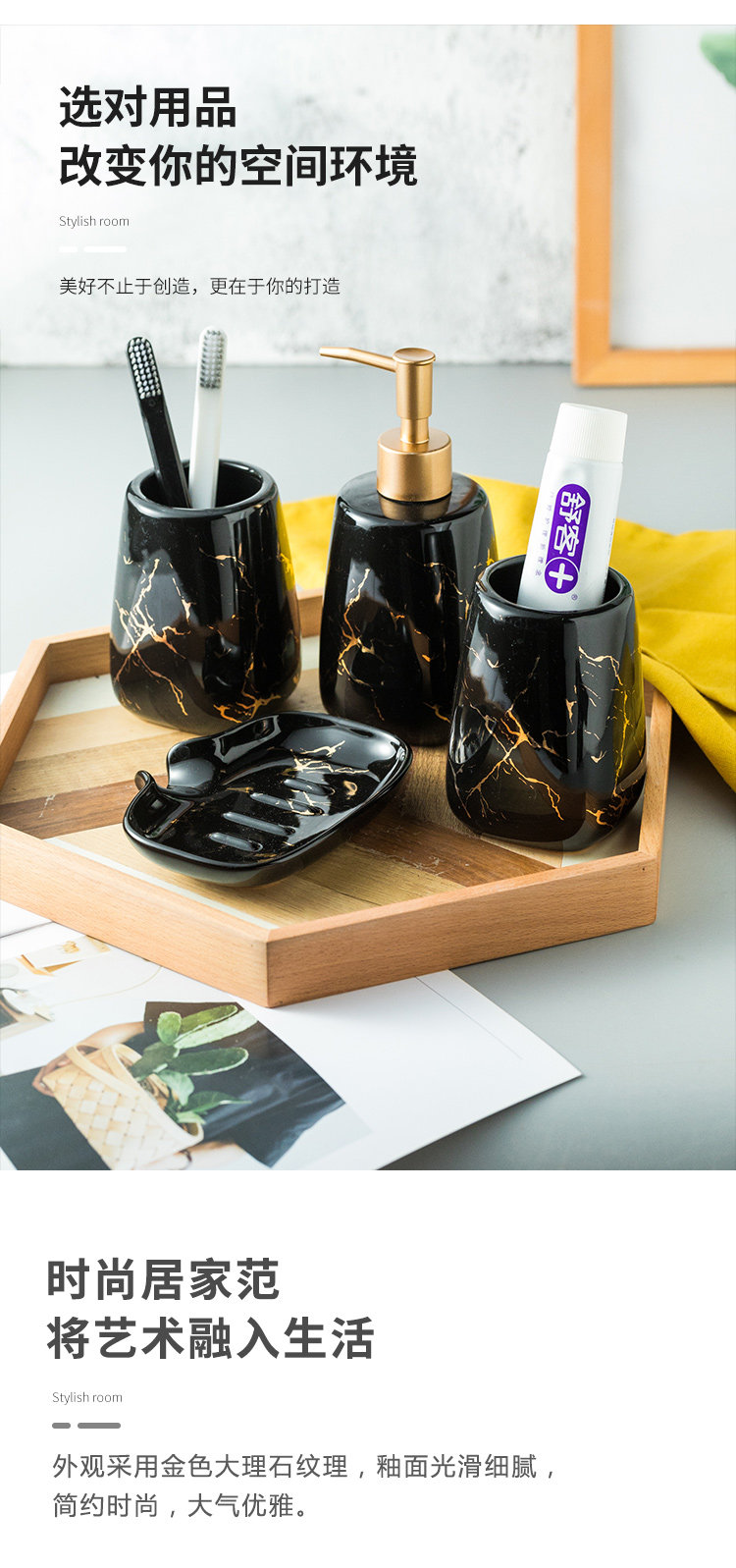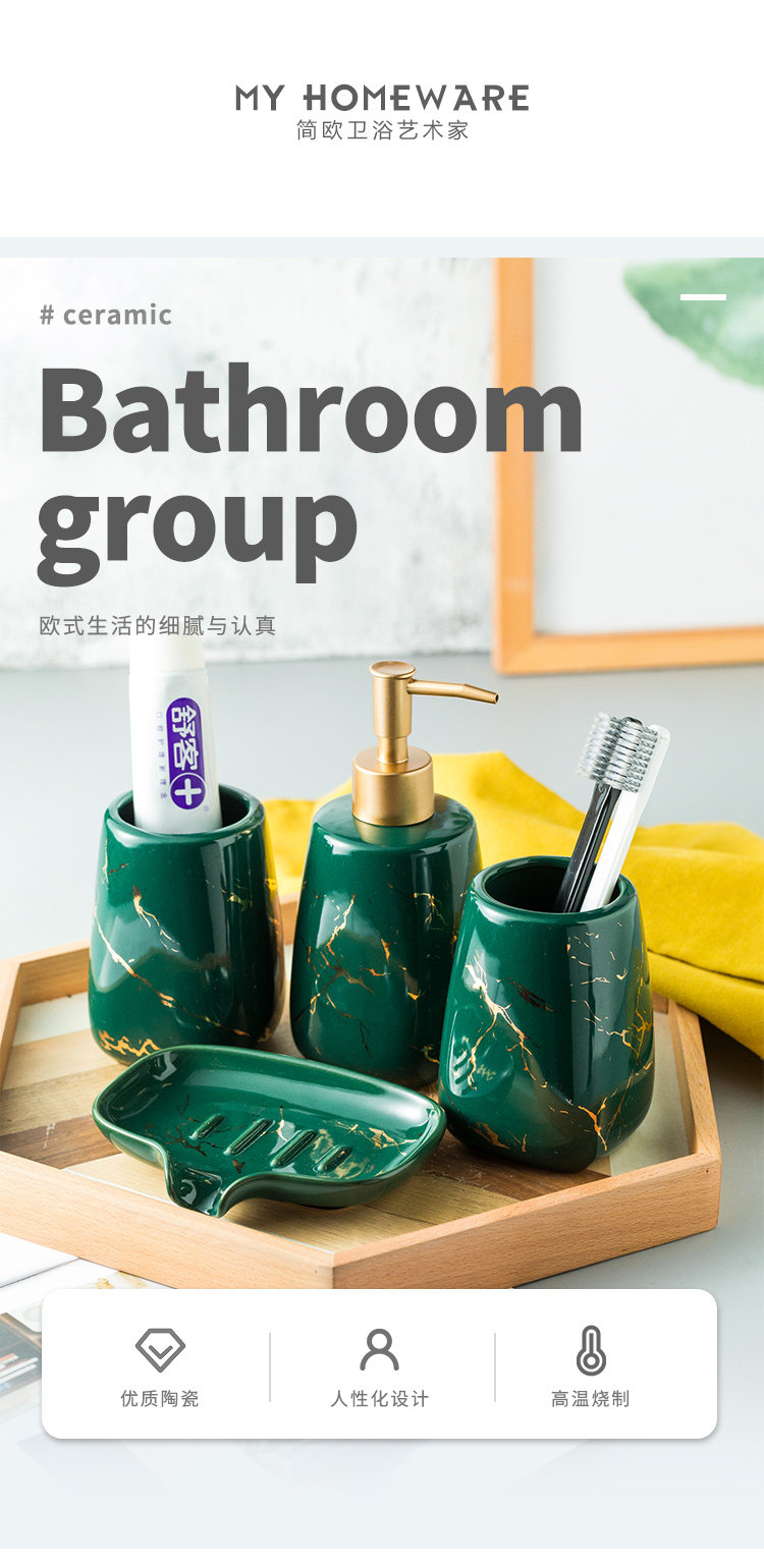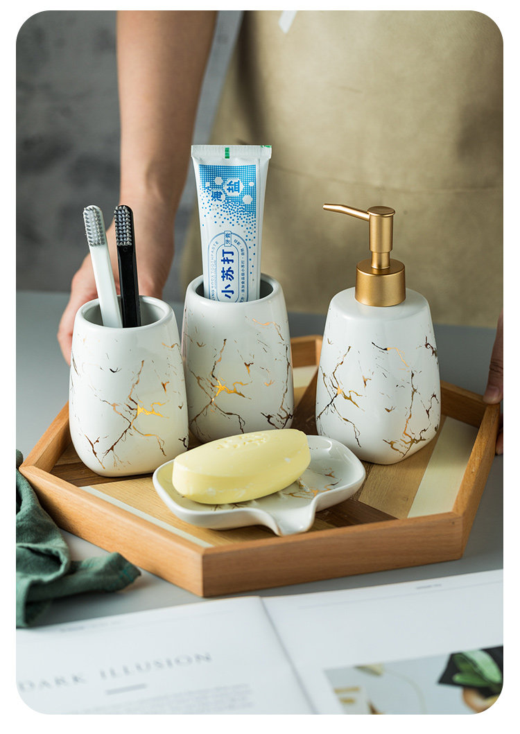 Керамический комплект, ополаскиватель для рта, зубная щетка, сушилка, легкий роскошный стиль, 4 предмета