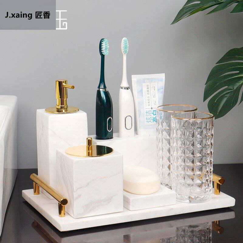 Мраморный комплект, ватные палочки, брендовый ополаскиватель для рта, легкий роскошный стиль