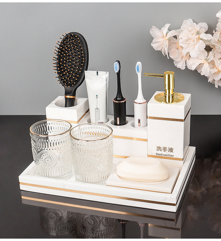 Высококачественный светлый роскошный мраморный набор туалетных принадлежностей для ванной комнаты, чашка для зубной щетки, умывальник, принадлежности для ванной комнаты, образцы украшений комнаты