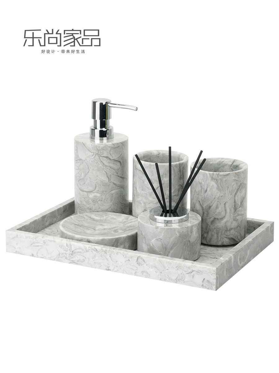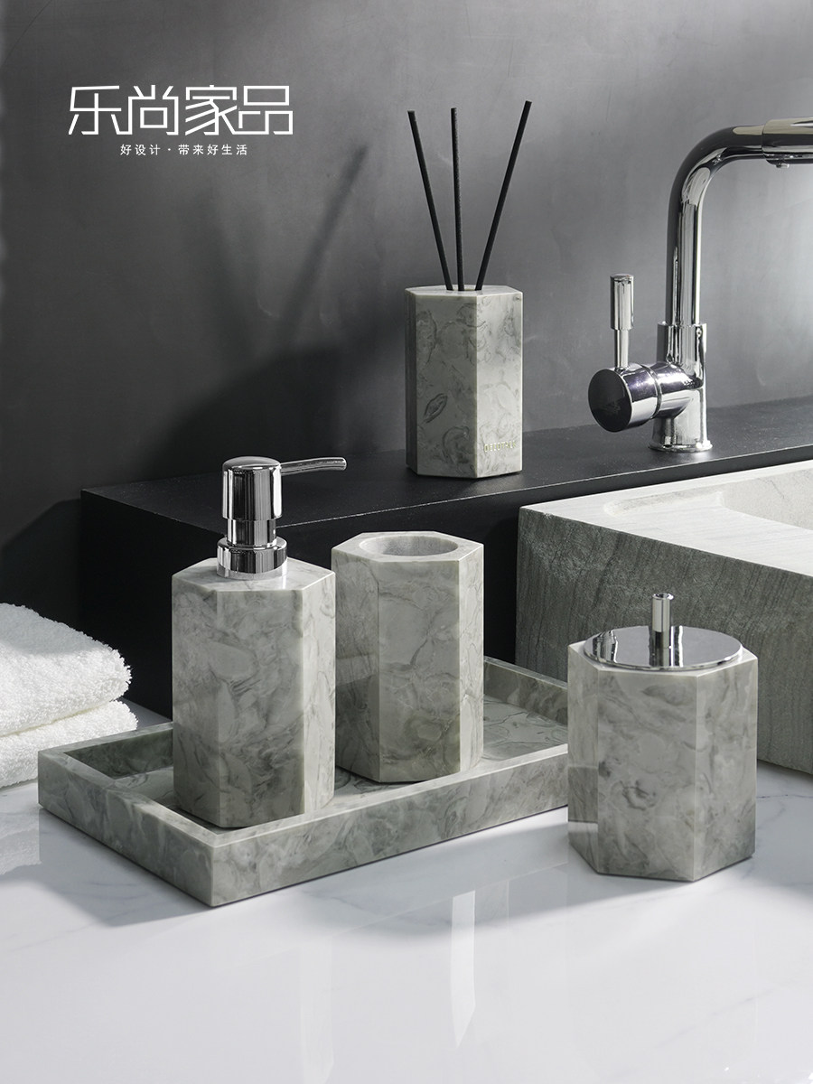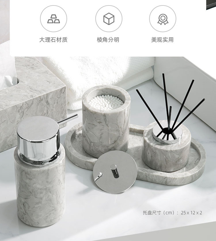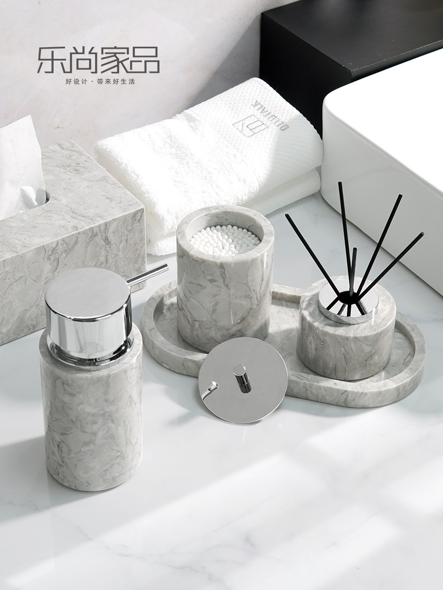 Легкий роскошный серый натуральный мрамор в ванной комнаты для ванной комнаты для стирки набор туалетных подносов ароматерапевтические украшения