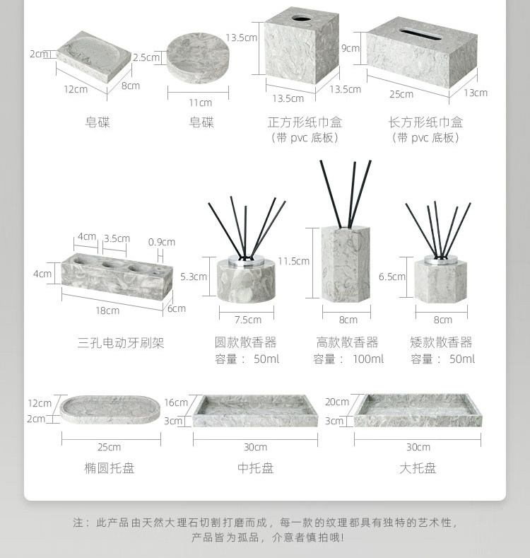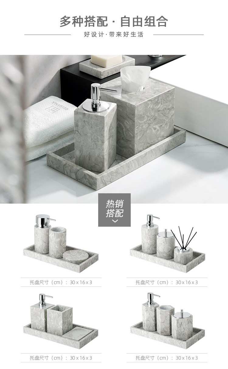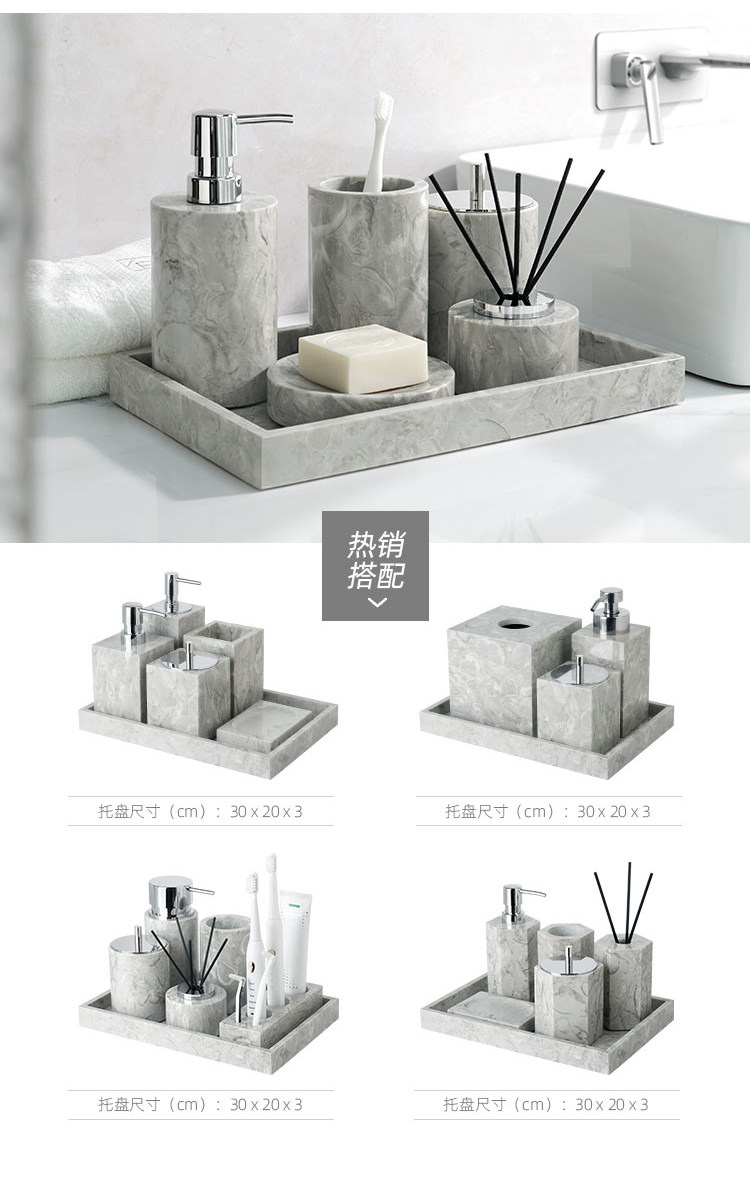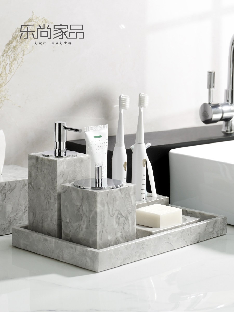 Легкий роскошный серый натуральный мрамор в ванной комнаты для ванной комнаты для стирки набор туалетных подносов ароматерапевтические украшения