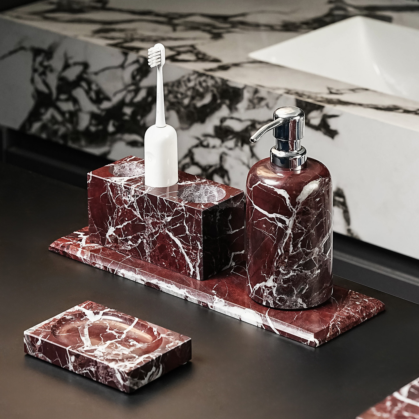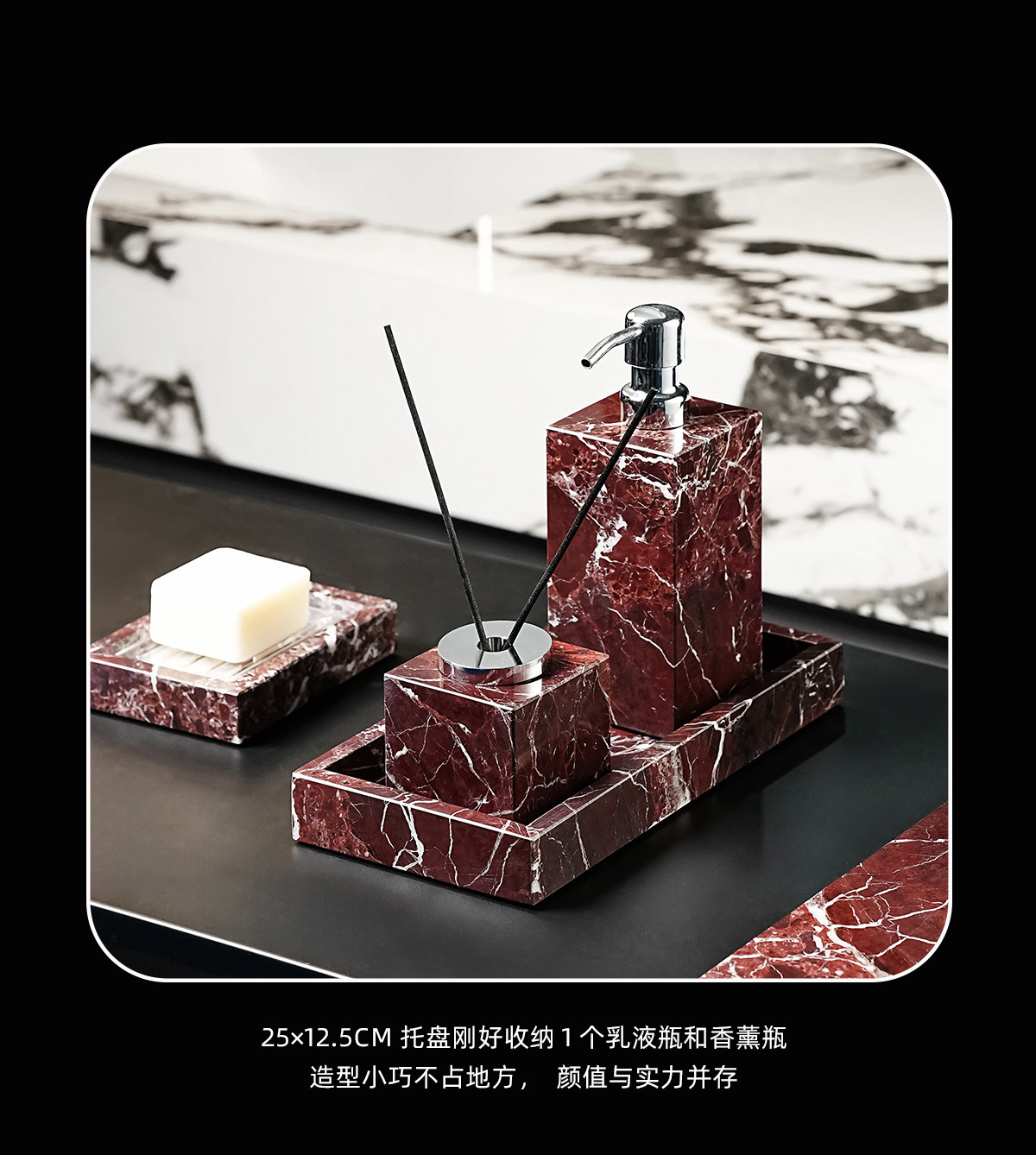 Фиолетовый красный мраморный набор туалетных принадлежностей для ванной комнаты, высококачественная мягкая отделка в стиле ретро, роскошные украшения из натурального камня