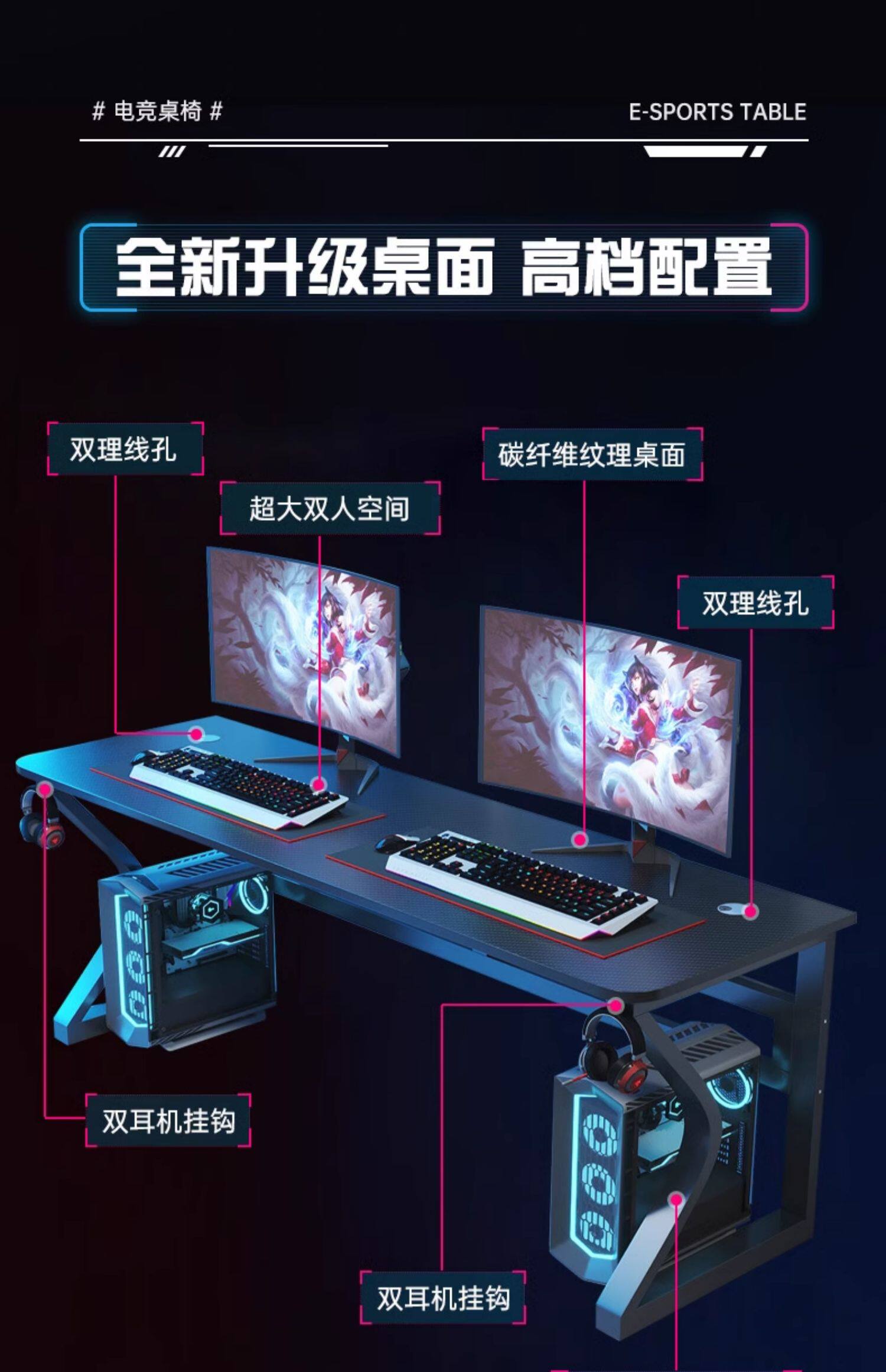 Компьютерный настольный стол и набор стульев для дома, спальни, пары, двойной игровой стол, интернет-кафе, отель, стол из углеродного волокна, стол для киберспорта