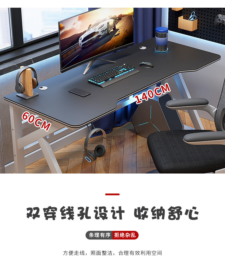 - [Черные ноги стола/двойные положения/крючки для доставки] 140*60 см белая полка