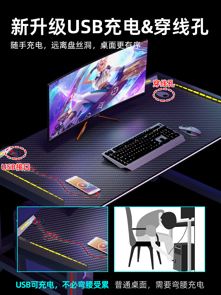 - Двойной набор таблиц 200*60*74 ОДИН ТАБЛИЦЫ И ДВА СТАВА [Углеродное волокно рабочего стола+зарядка USB]