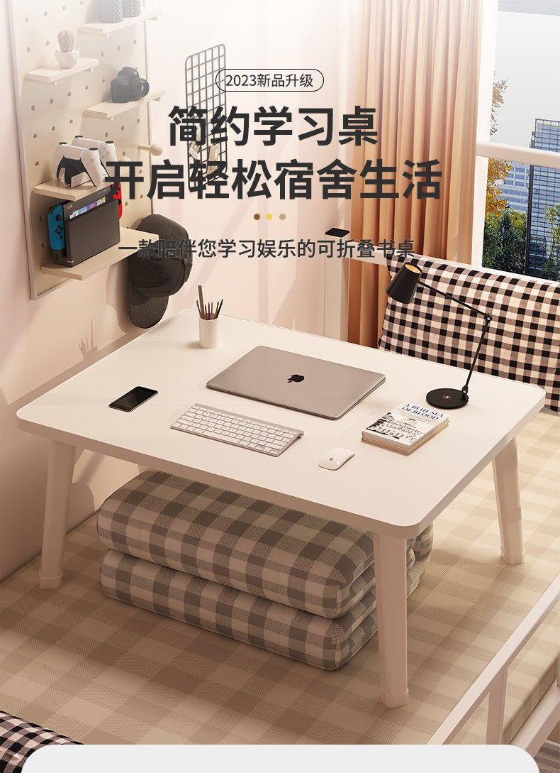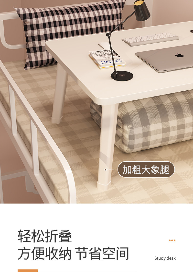 Небольшой стол на кровати, Стол складного стола компьютера в бурном окне, домашний ленивый настольный писательский стол.