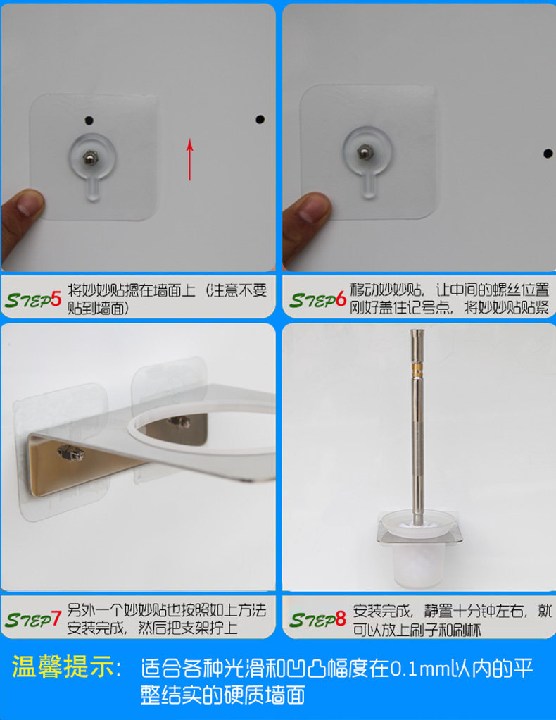 Оборудован 2 сильным липким клеем без трассировки, вы можете свободно установить его, бесплатное бурение и бесплатные ногтиНе повреду стене, не спасайся и беспокойсяВы можете установить его голыми руками!