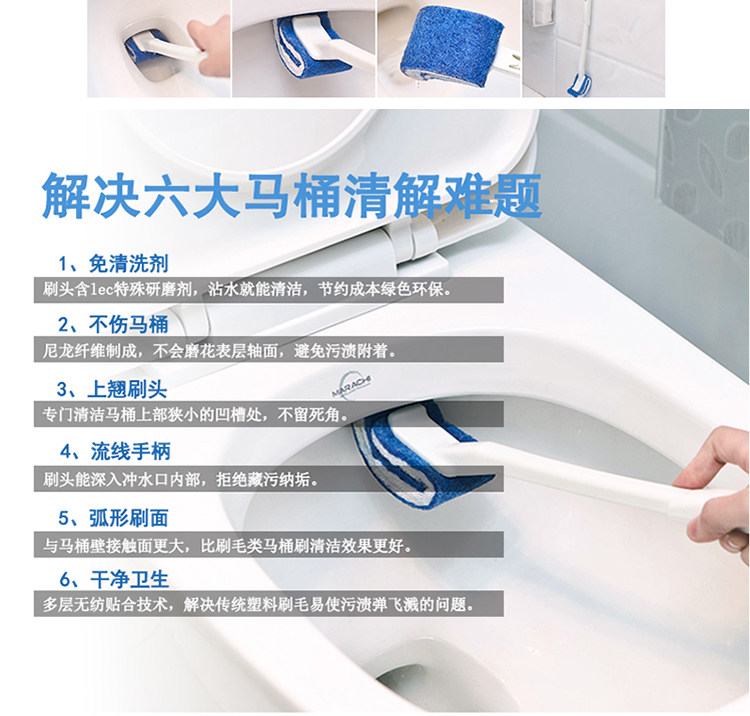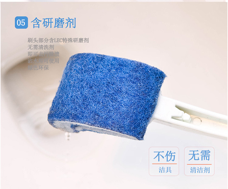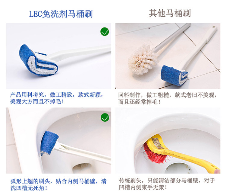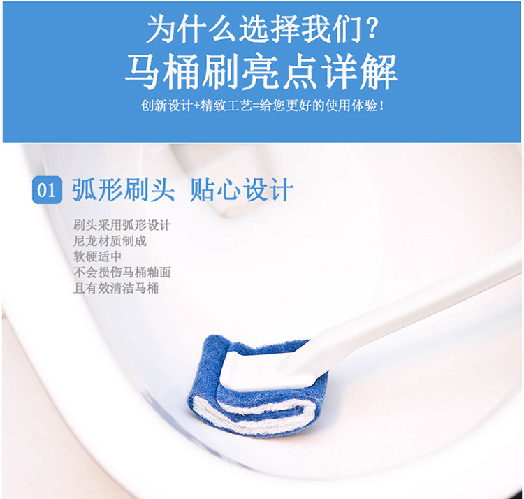 [Особенности продукта] 1. Содержит специальный абразив Lec, который удобен для очистки пятен; 2. Передняя часть головки щетки направлена вверх, что позволяет очистить внутреннюю стену вокруг унитаза без мертвых углов; 3. Сверхтвердый материал ручки удобен и экономит трудозатраты в использовании. Головка щетки обработана противообрастающей обработкой. Материал головки щетки более прочный и недеформируемый, чем обычные щетки для унитаза, что облегчает удаление пятен; 4. Конструкция подвесного отверстия для удобства хранения.