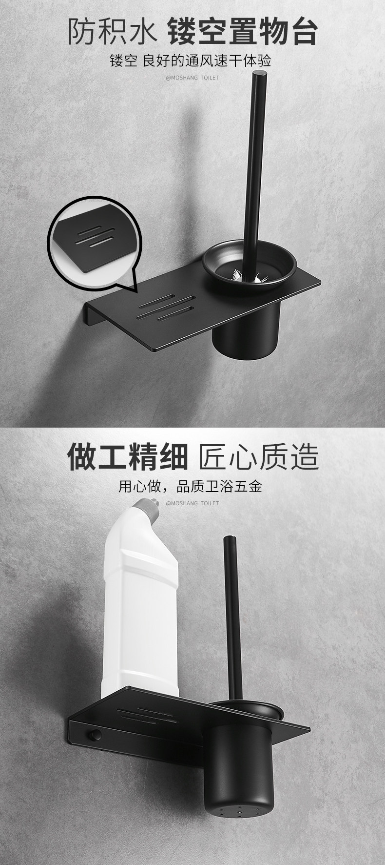 Нордическое черное пространство алюминий без удара туалетная туалетная туалетная туалет щетка рукав рукав для хранения ванной комнаты настенная стена висящая стена