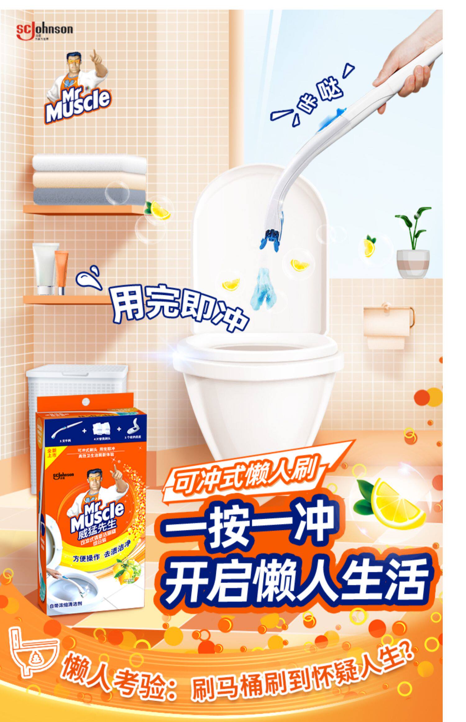 Мистер Джонсон Мэн Мэн -однократная туалетная щетка туалетная щетка может быть выброшена растворимой растворимым, заменить туалет для чистки головы