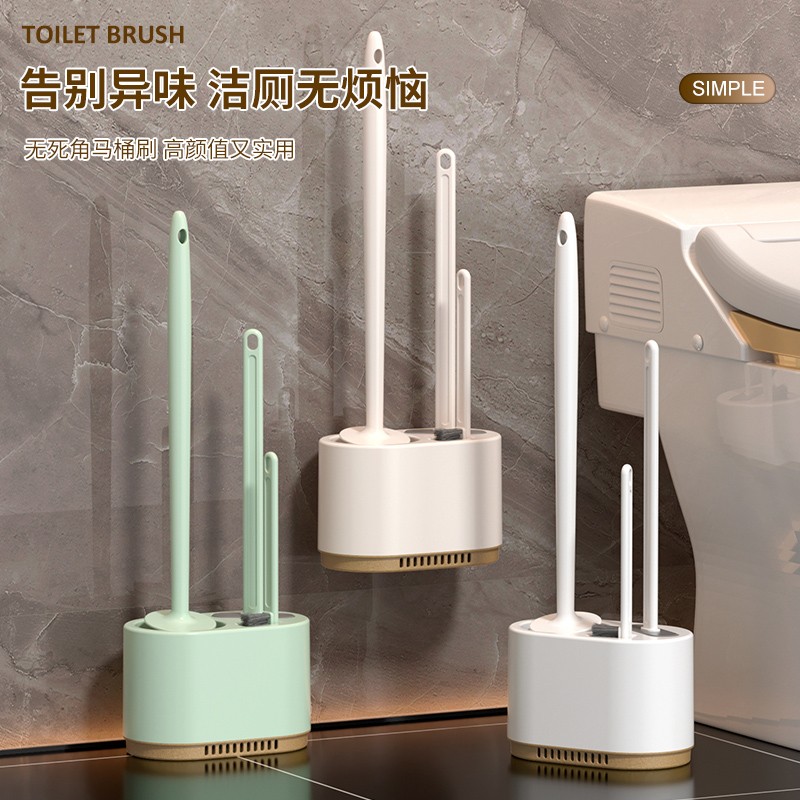 - Набор из четырех предметов - темно-зеленый [ершик для унитаза + плоская щетка + щетка для чистки + зажим]