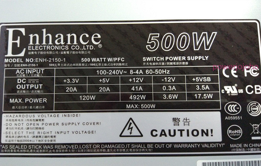 рейтинг власти500W,проходитьCCC,CE,FCC,UL,ROHSВ ожидании международного сертификации,С активной коррекцией коэффициента мощности.