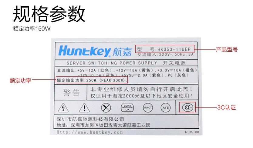 Hangjia 1U Power Hangjian HK354-11UEP Номинальное значение 250 Вт 1U Сервер Сервер 3C Сертификация 24+8PIN