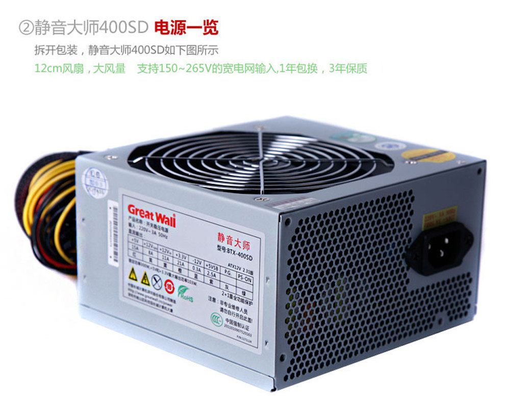 Беззвучный блок питания, ноутбук, вентилятор, 300W, 12см