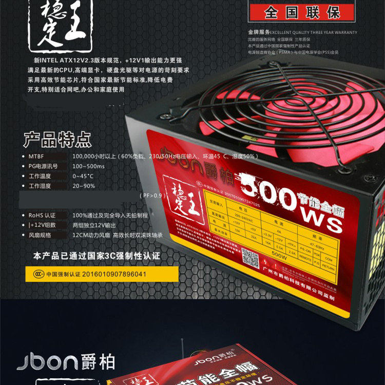 Juebai 500W Desktop Computer Host Источник электроэнергии Silent Lightning и влажность -широкопроизвольная мощная поддержка 8 -го уникальных производителей