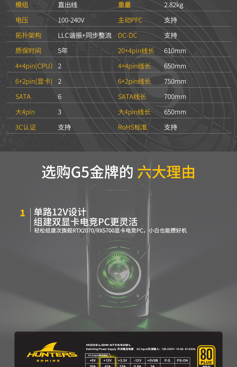 Блок питания, медный ноутбук, G5, 550W, 550W