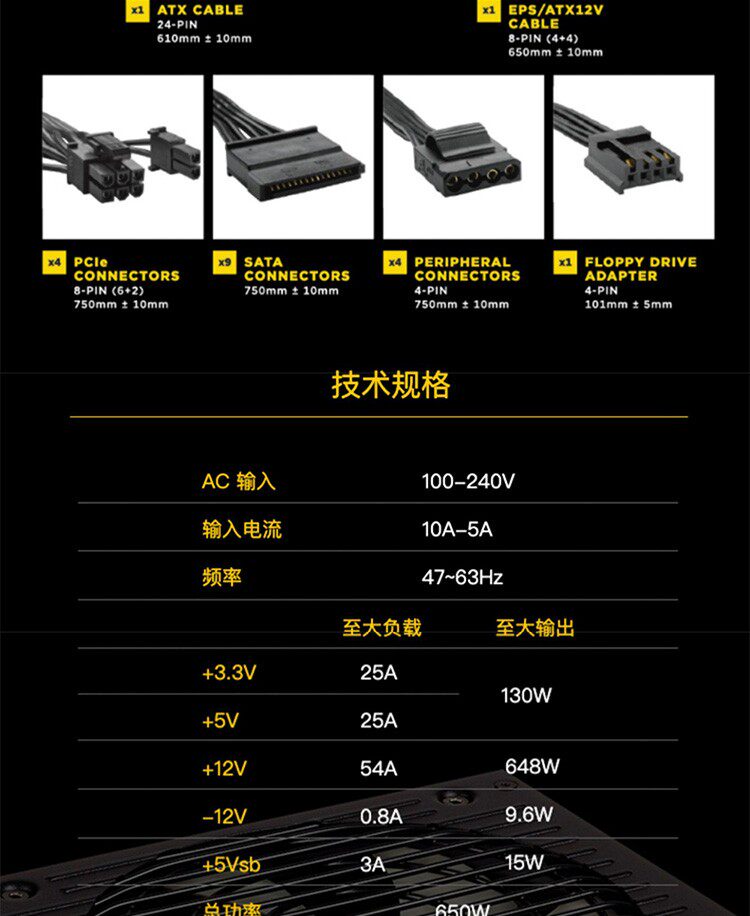 美商海盗船 Блок питания, 650x, 750x, 850x, 1000x, 650W, 750W, 850W, 1000W