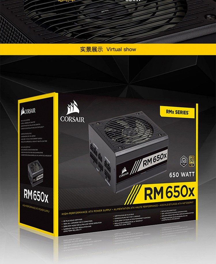 American Corsair RM650x/RM750x/RM850x/RM100X Золотая медаль Полный модуль 80pls Сертификация