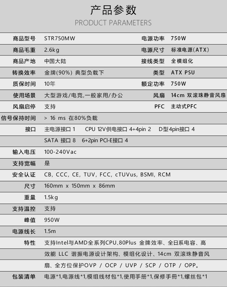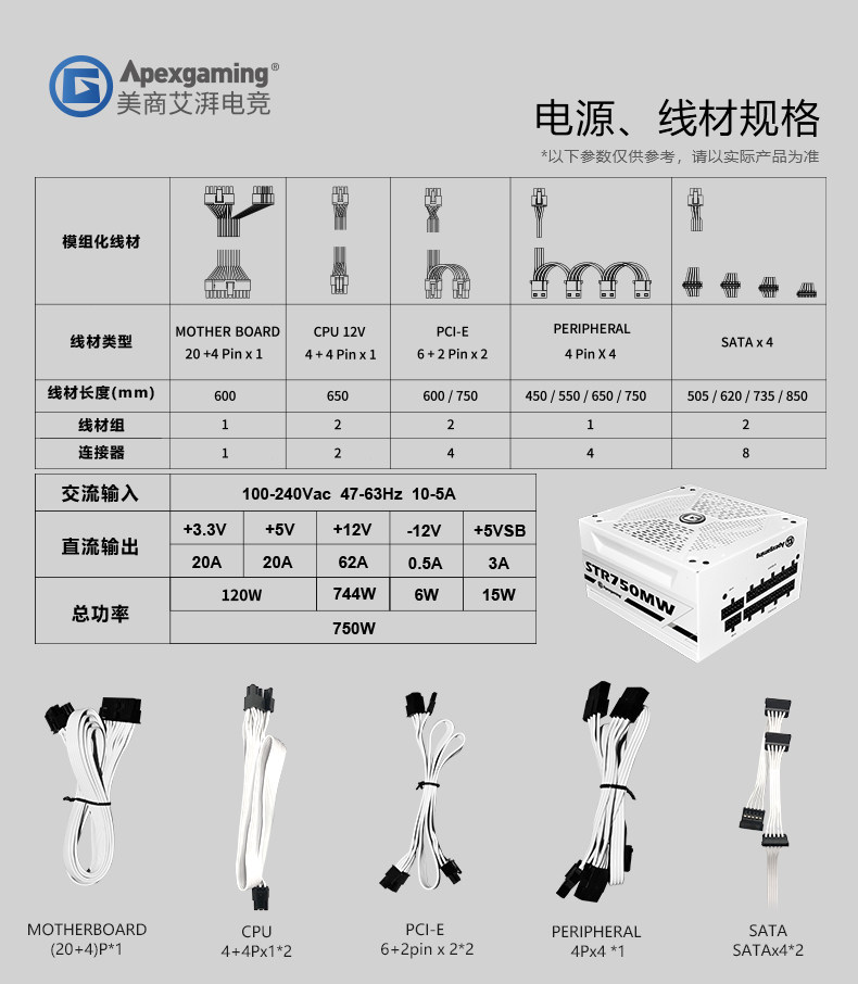 Apexgaming (Apexgaming) STR-750MW Номинальная полная модульная сборка компьютерной сборки. Морепет