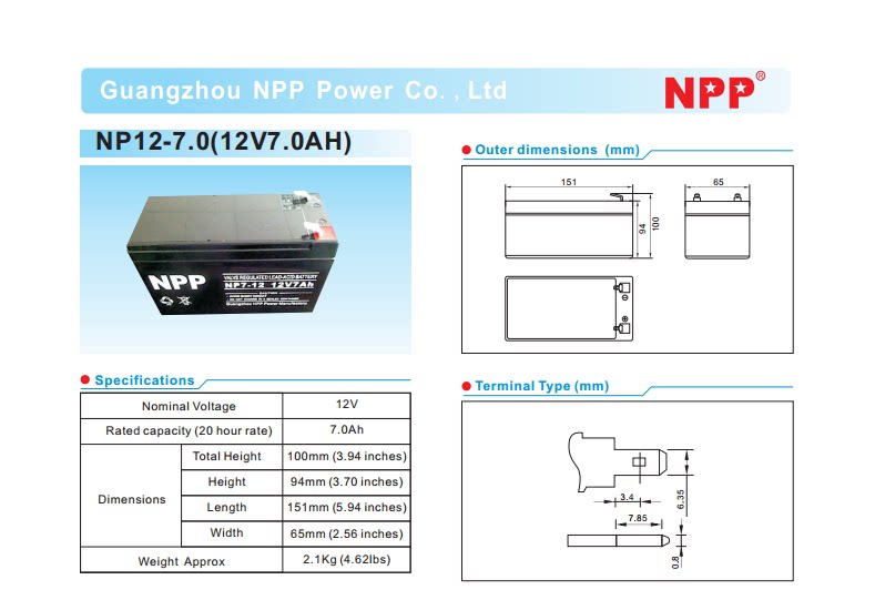 NPP Аккумулятор, батарея на солнечной энергии, NP12-7, 12v, 7AH, UPS