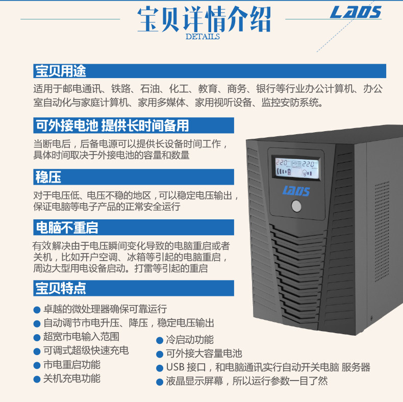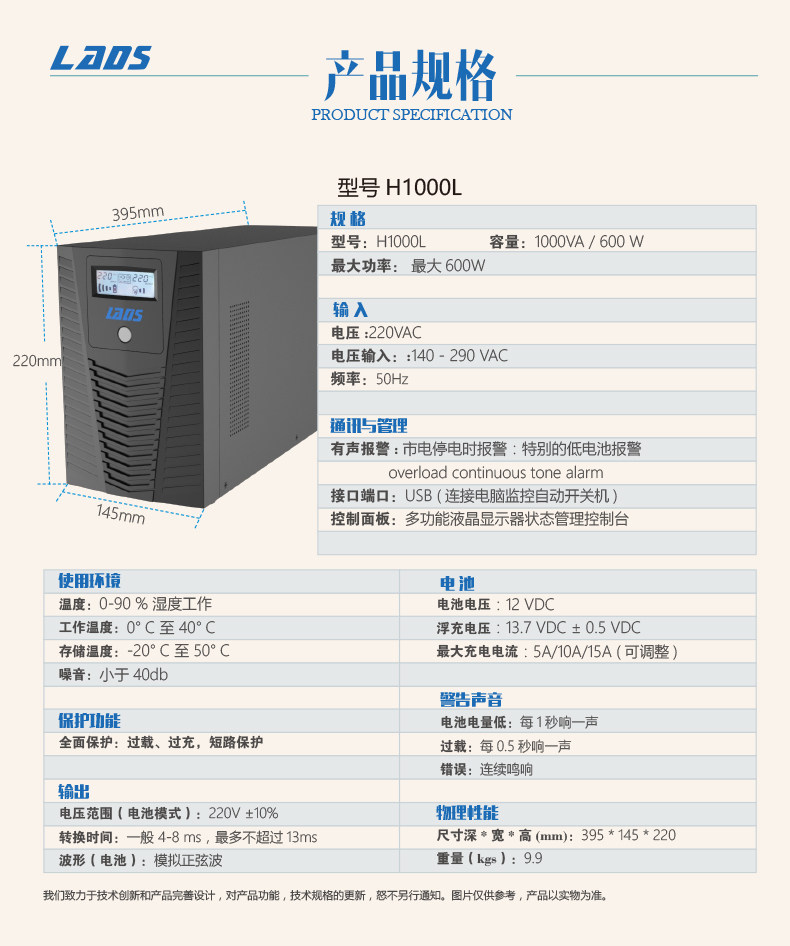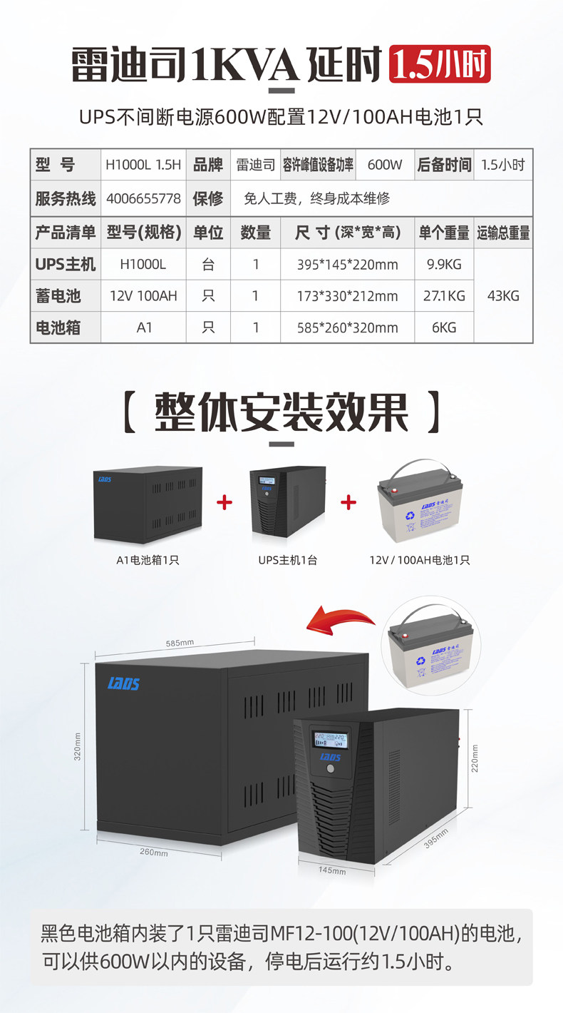 雷迪司 UPS UPS UNERUPREPT POWER 1000VA 600 Вт задержка задержка 1,5 часа ЖК -дисплей H1000L