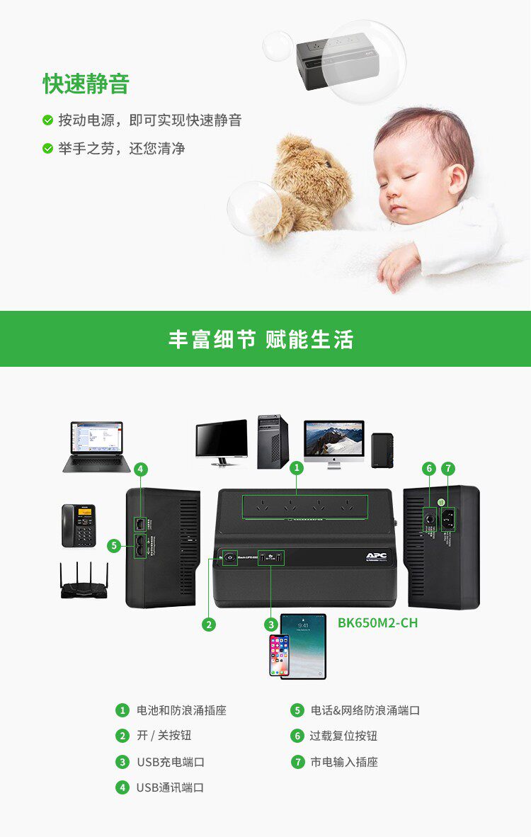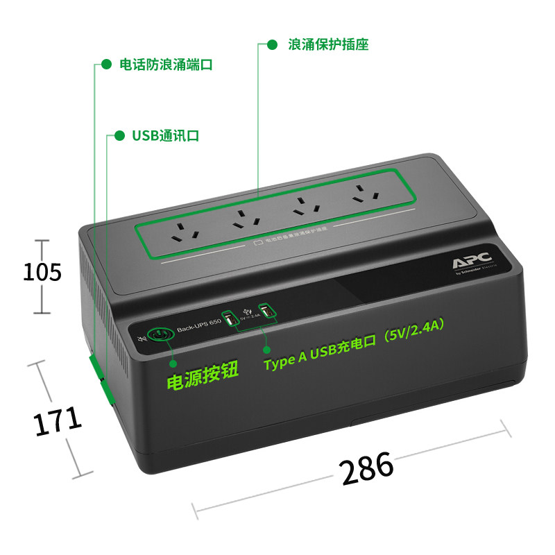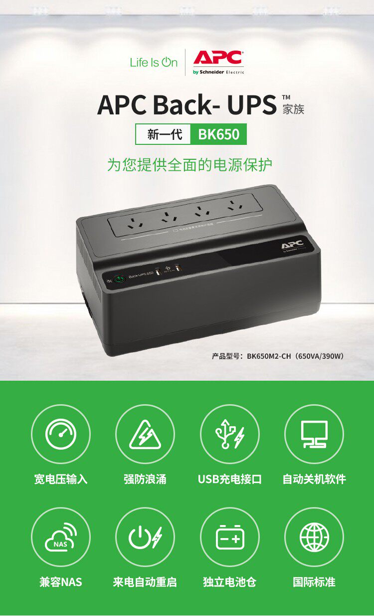 APC UPS UPS непрерывная мощность BK650M2-CH 390W/650VA Synology NAS Family Backent Power