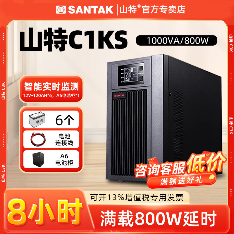 Shante C1KS UPS Непрерывная питание 1 кВА/800 Вт Серверная резервная батарея Длинная батарея -8 часов