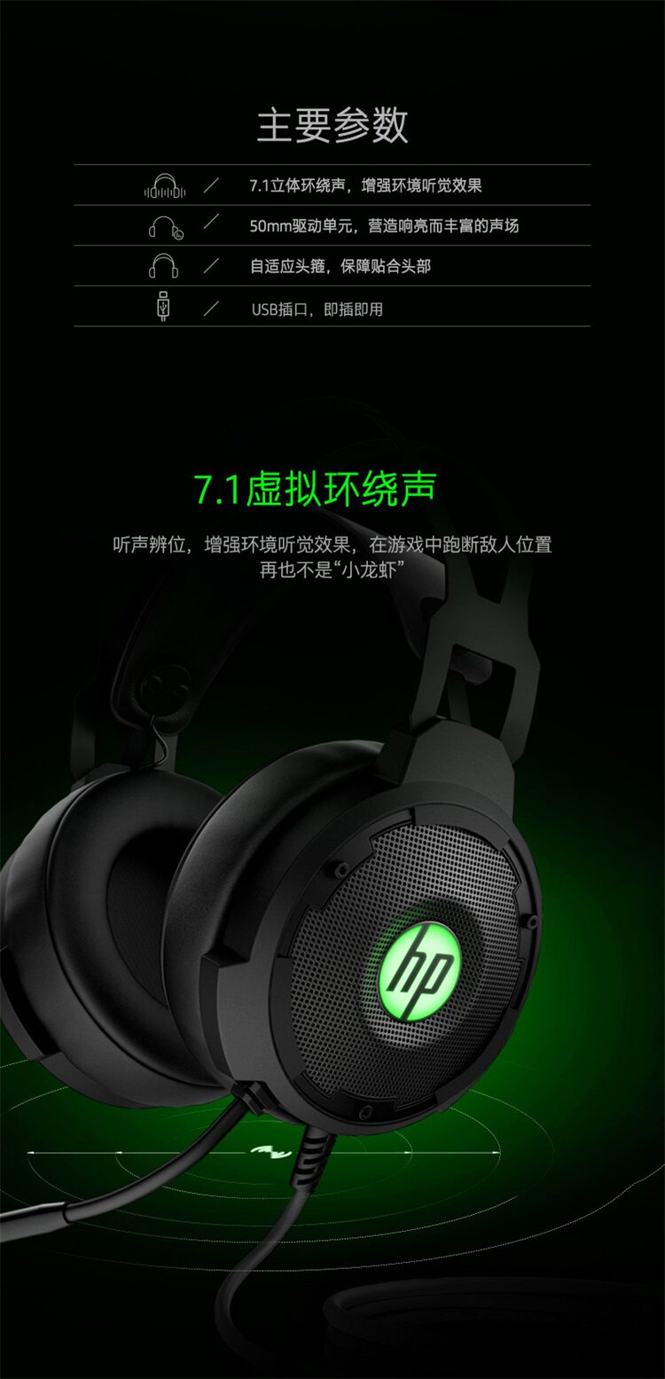 HP/Pavilion P600 Wear Game Hearset 7.1 Виртуальная стерео USB -общая игровая курица