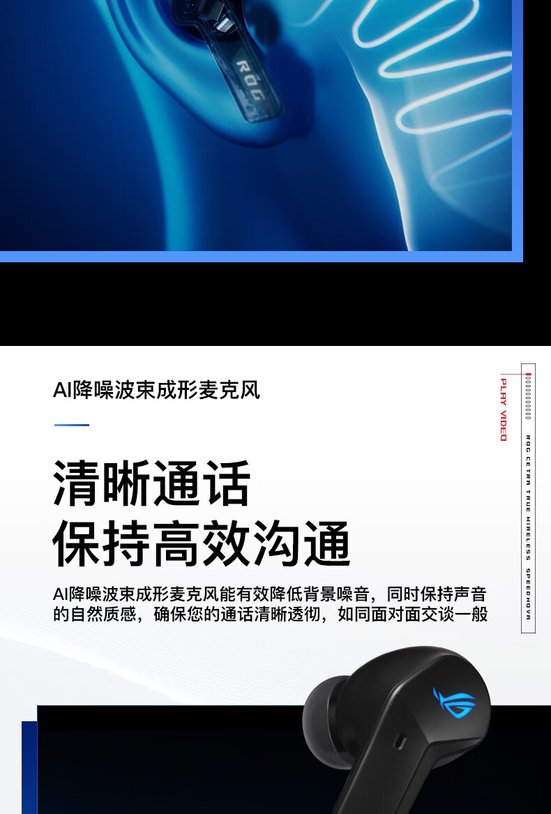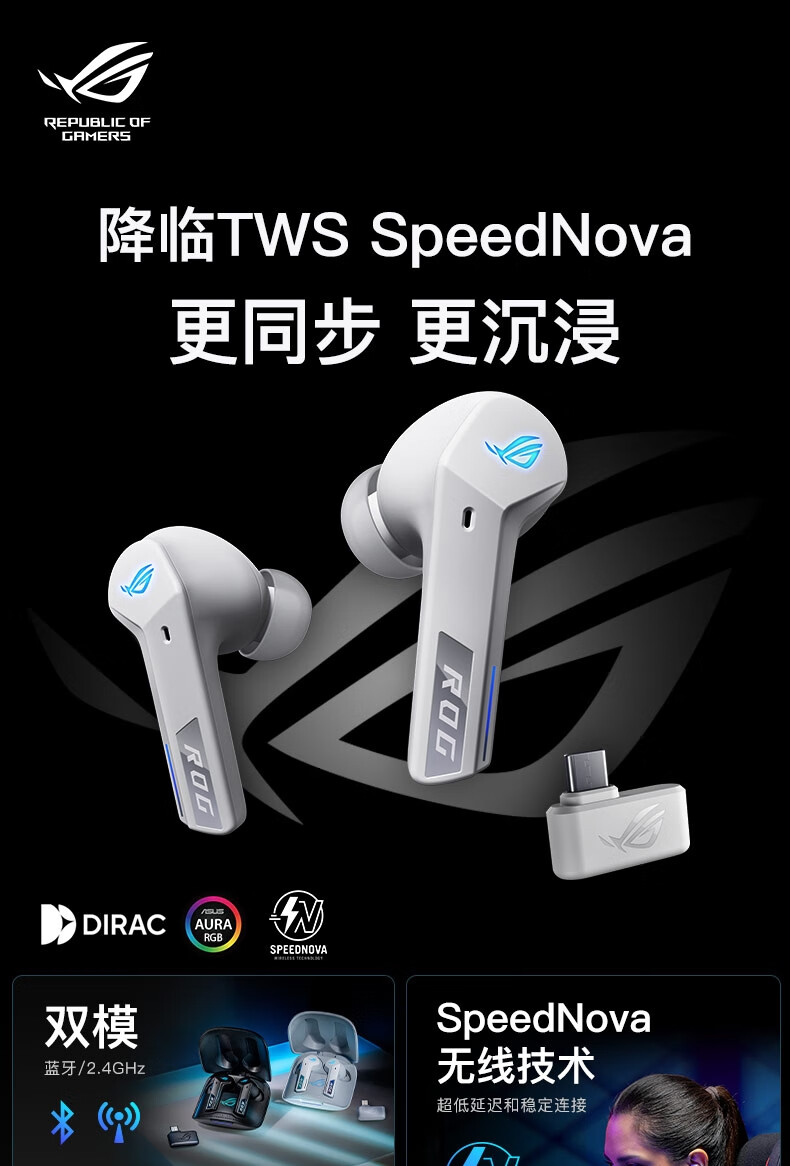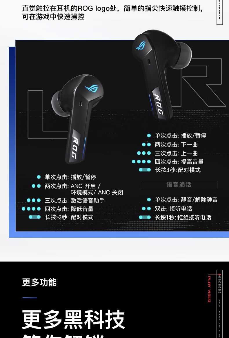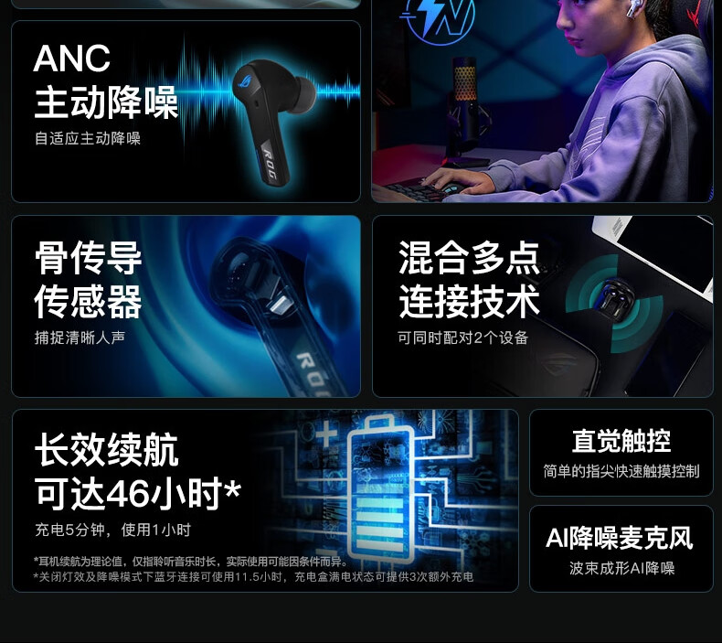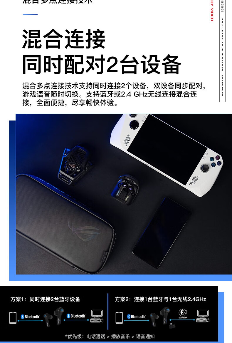 【Студенческая субсидия 20%】 ROG прибывает TWS прибывает 2 внедорожных беспроводных наушников электронных видов спорта, обжигающие шумопочтения Наушники наушники