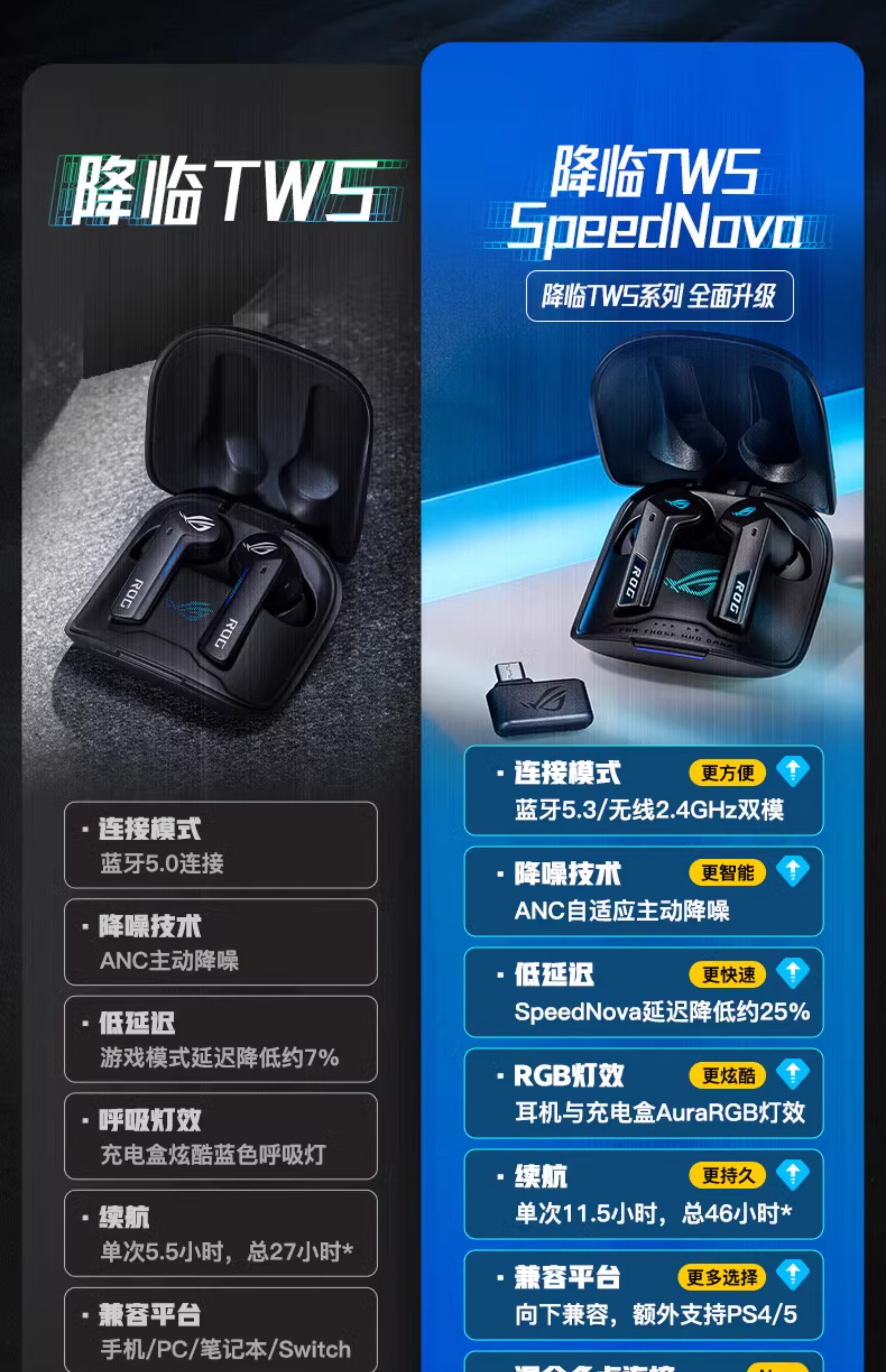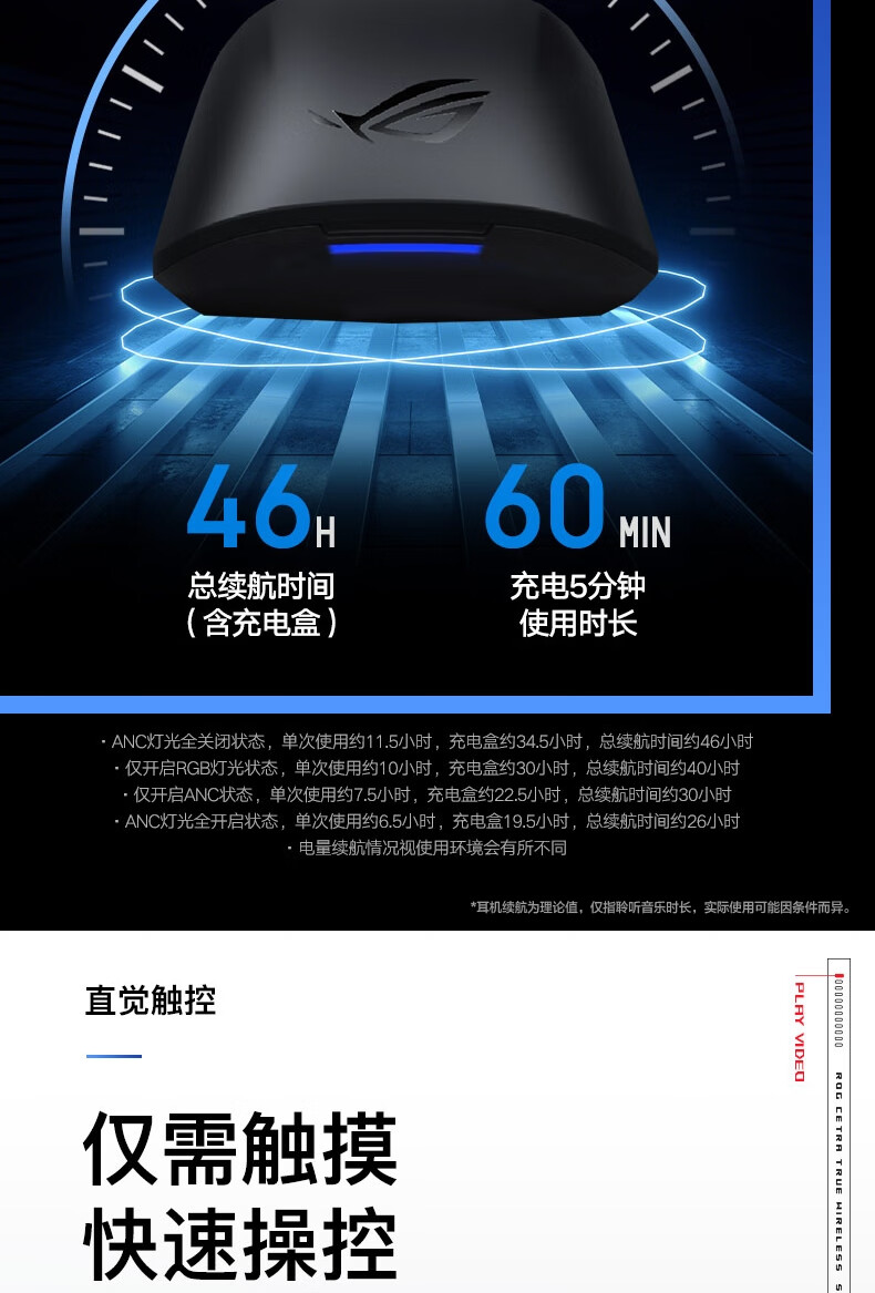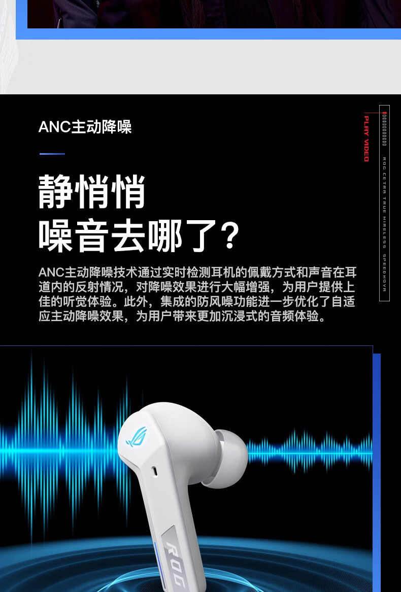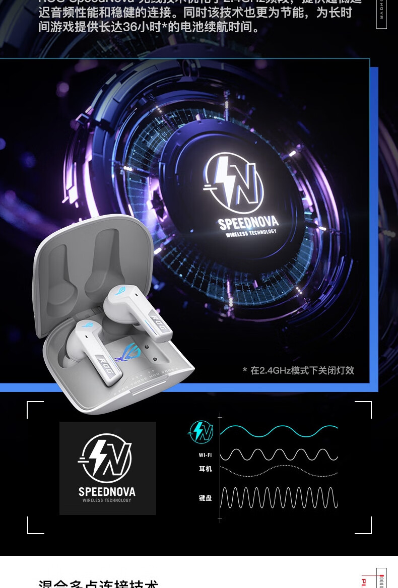 【Студенческая субсидия 20%】 ROG прибывает TWS прибывает 2 внедорожных беспроводных наушников электронных видов спорта, обжигающие шумопочтения Наушники наушники