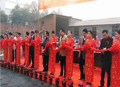 Резать ленту красный цветочный мяч, награждая большой цветочный мяч, чтобы обнародовать свадебную машину красной гортензии, новая машина Большой Красная Цветочная Шелковая ткань Славный цветок