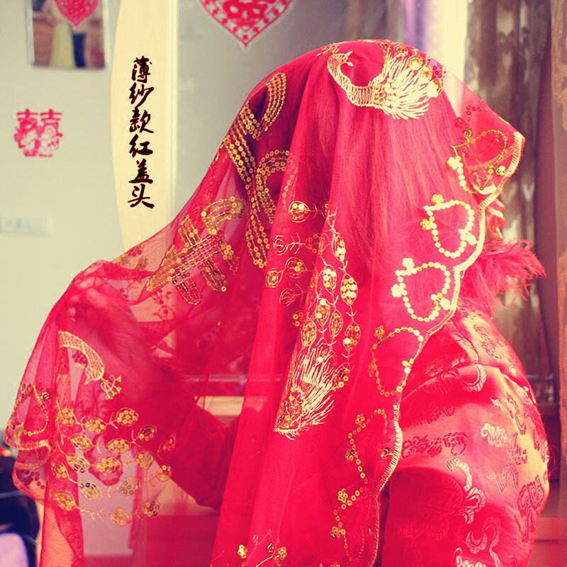 Красная вуаль xipa красная хиджада невеста китайская марля свадьба прозрачная красная двойная кружевная костюма аксессуары невесты