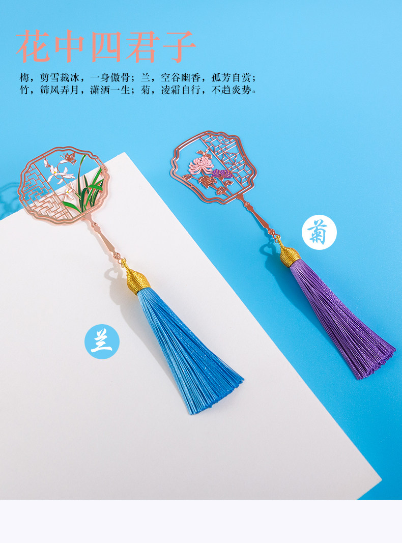 Китайский стиль подарок Creative Four Gentlemen Bonether -Planted Rose Gold Metal Coolmark Cultural and Creative Gifts, чтобы отправиться за границу, чтобы отправить иностранцев