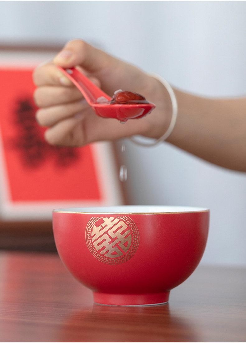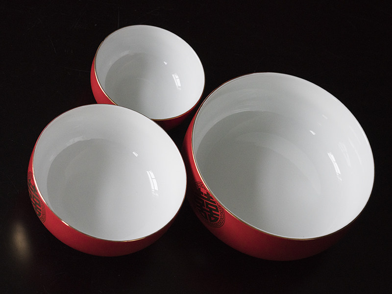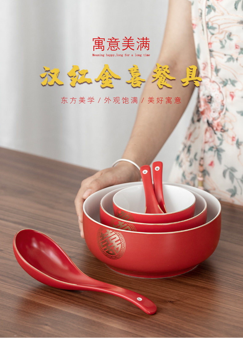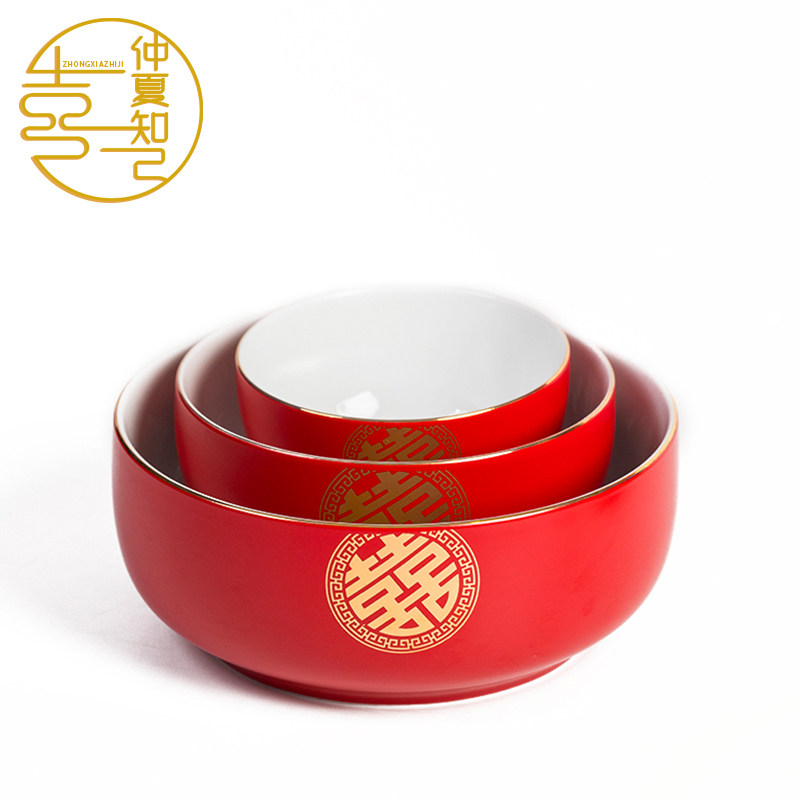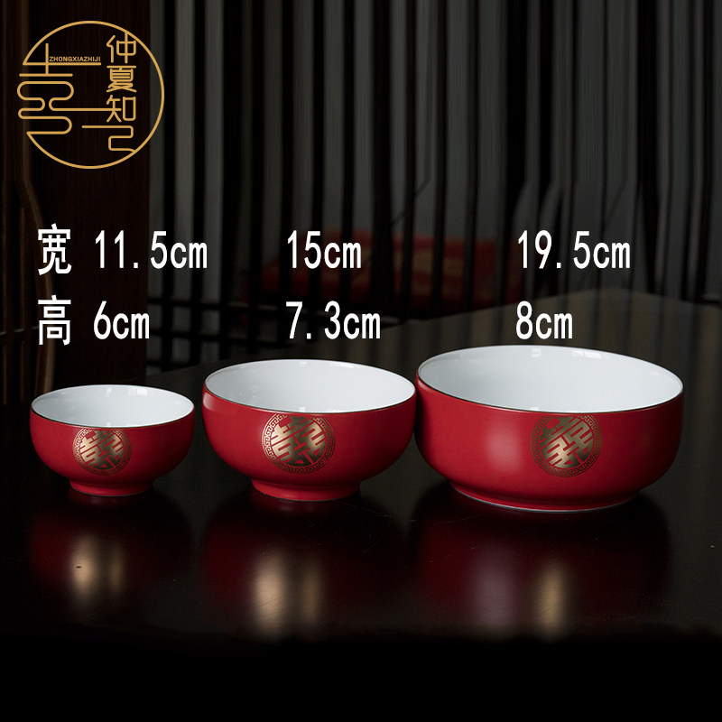 Свадьба свадебная чаша Hanhong High -Очень длинная -керамическая миска с большим миской большой миска большая миска большая миска свадебные блюда и палочки для палочек на фоне красной миски