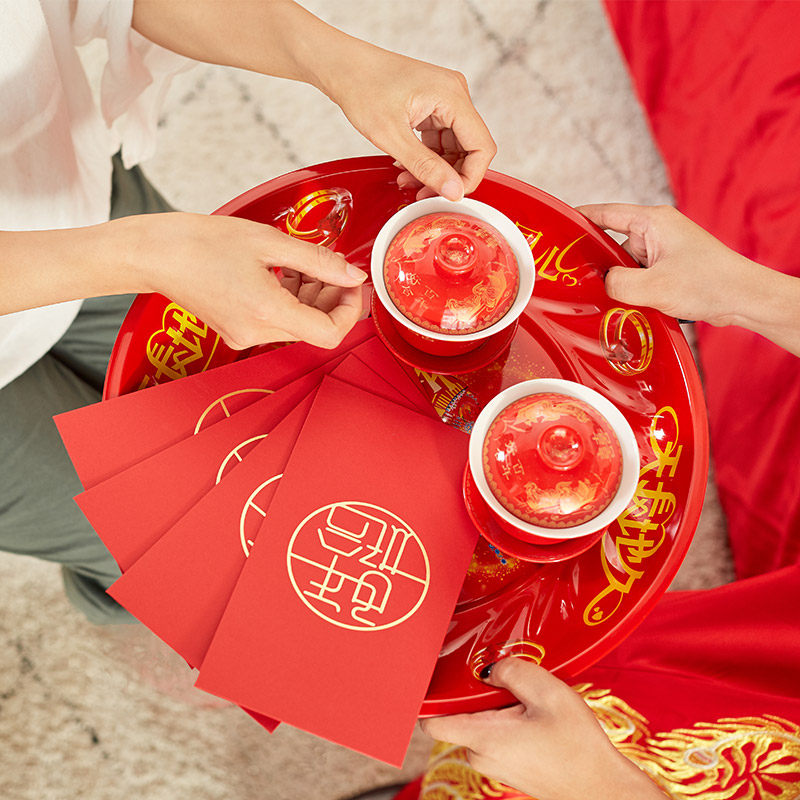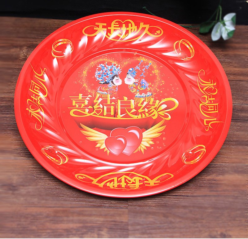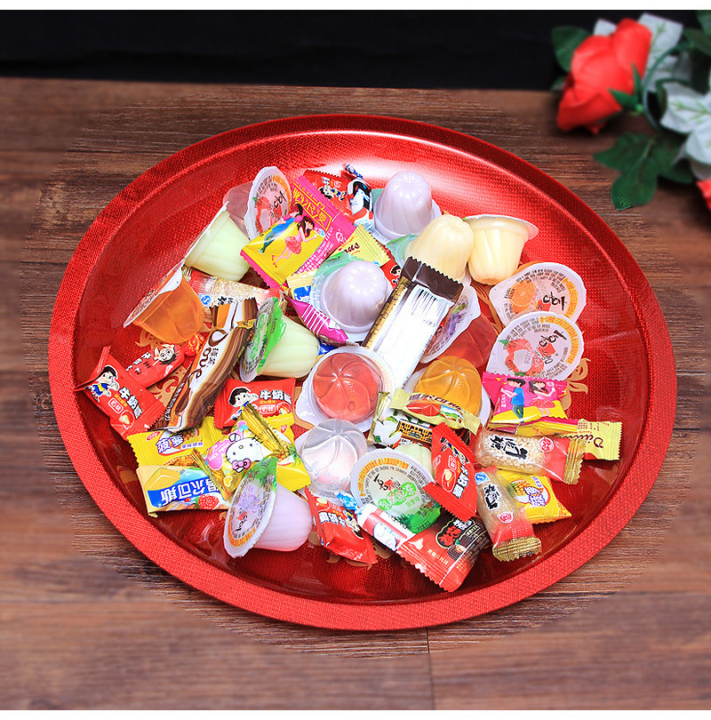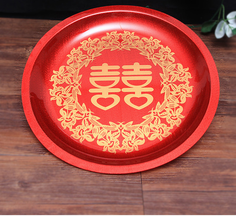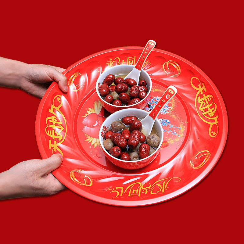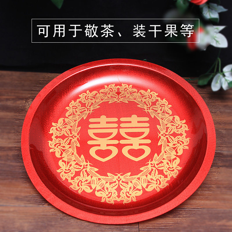 Гонг -чайный поднос сухой фрукты лоток конфеты фрукты фрукты Свадебные принадлежности свадебный дом новичок новичок в красном свадебном банкете праздничная тарелка