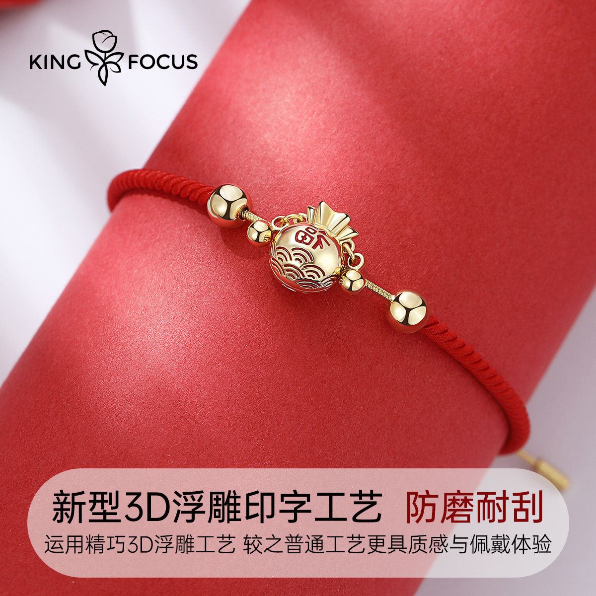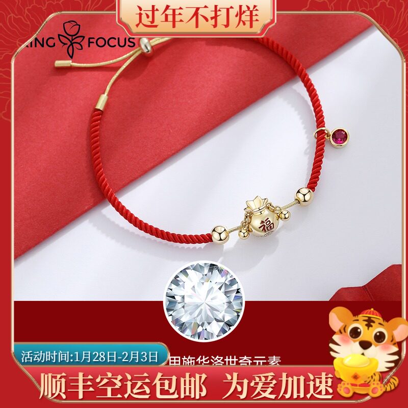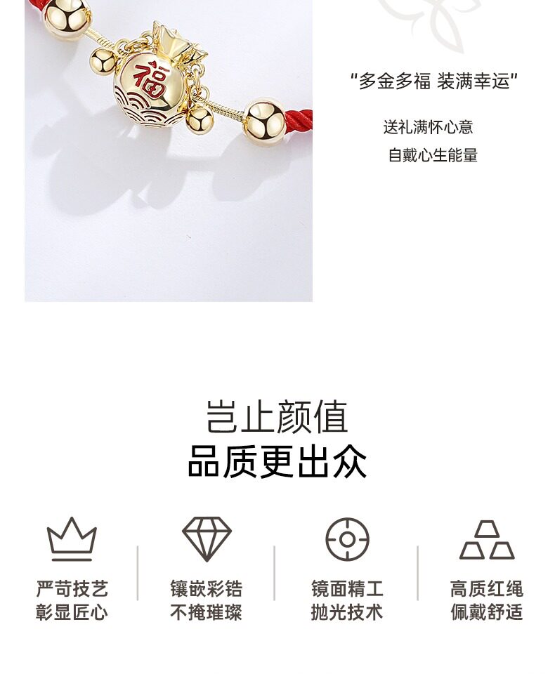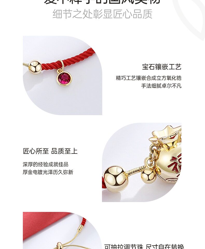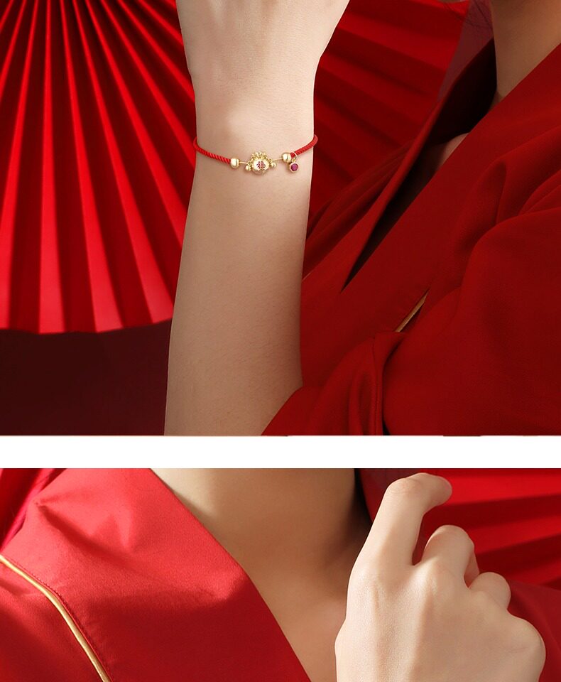 - Hongyun Lucky Bag Bracelet-Golden Red+Love Flower Gift Box+Little Bear
