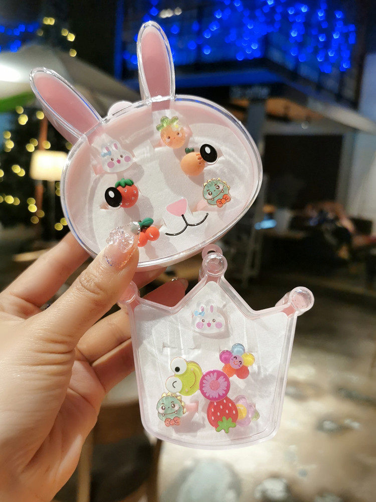 Милый кролик, аксессуар, пластиковая прозрачная коробка для хранения, детское мультяшное кольцо, портативная коробочка для хранения