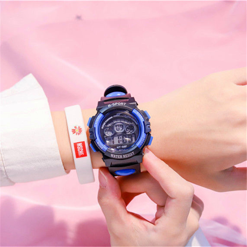 - Электронные часы черный синий+положительный подарочный подарочный коробка+Браслет Daisy