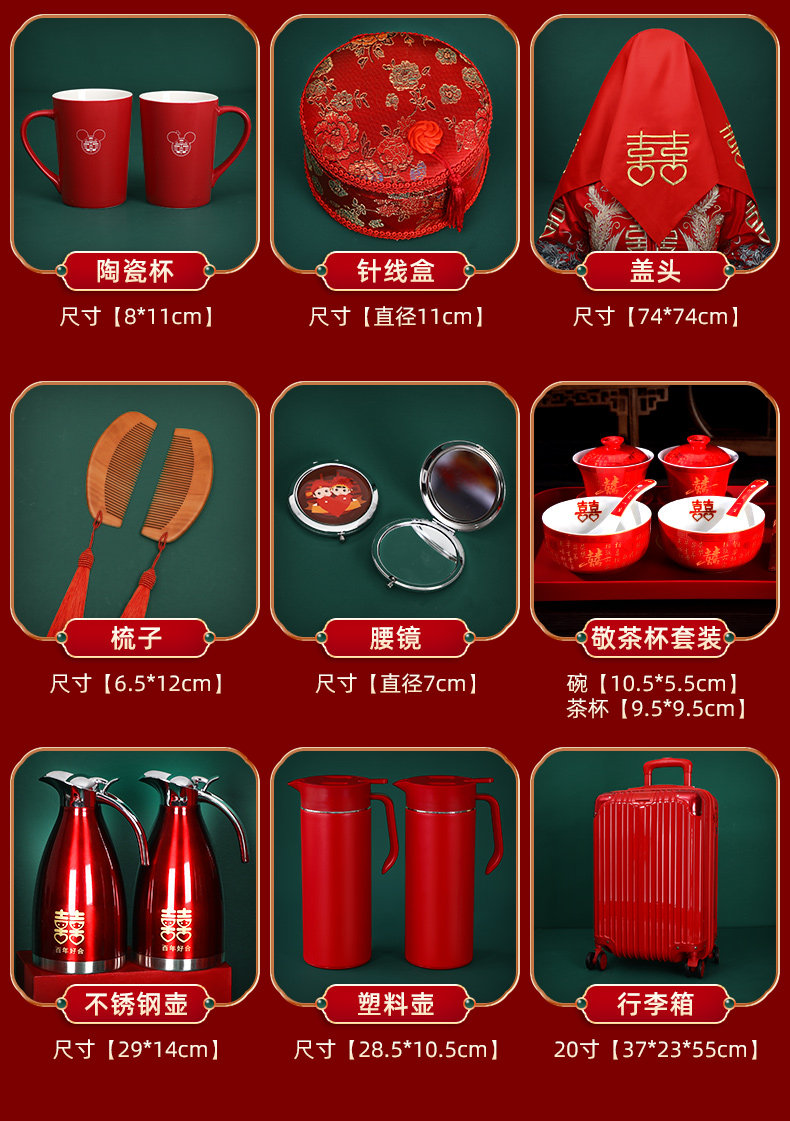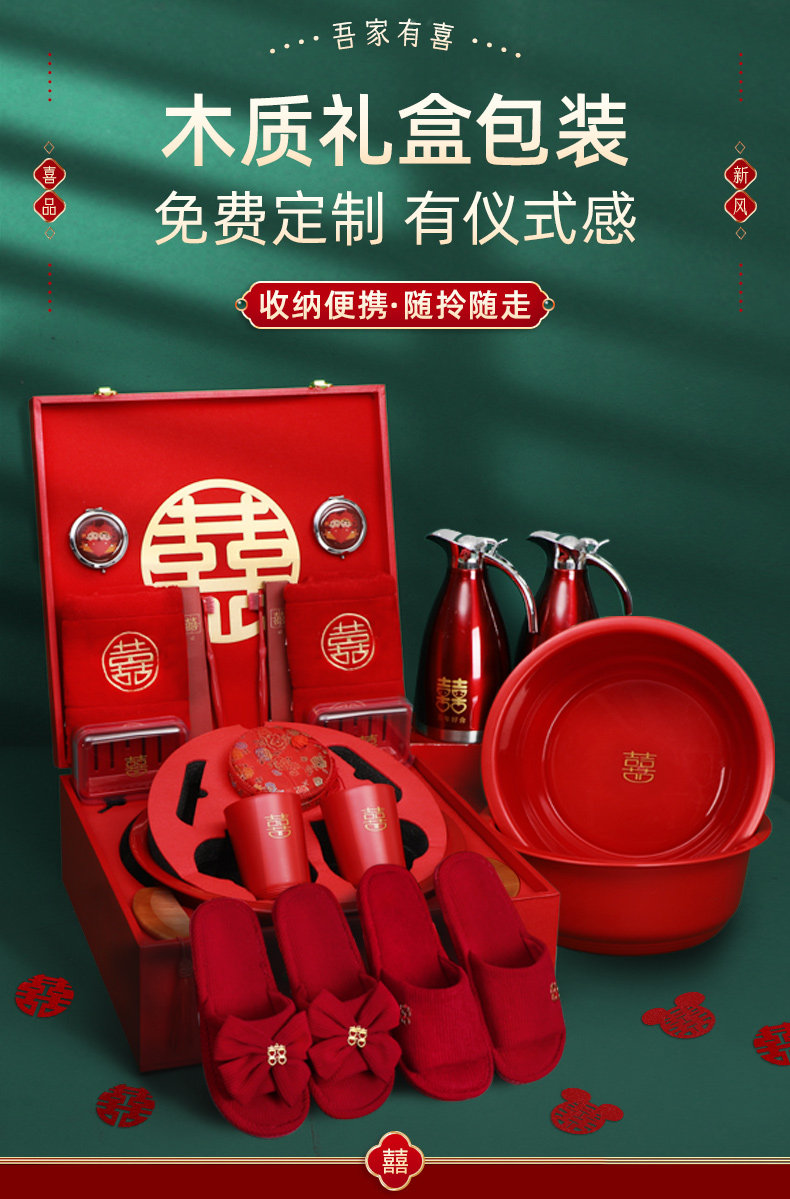 Брак сопровождает товары, женщины полный набор припасов Daquan High -Fend Dowry Set Свадебная свадебная свадебная коробка туалеты