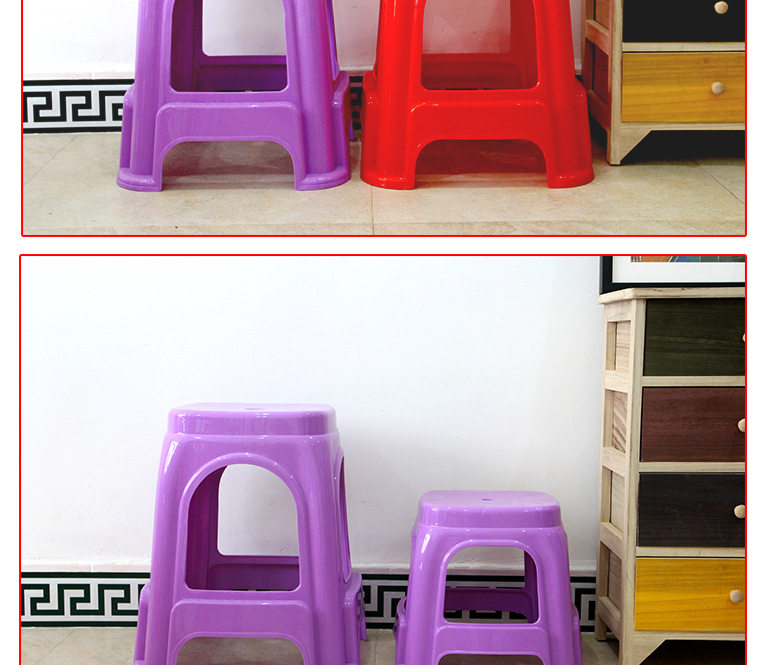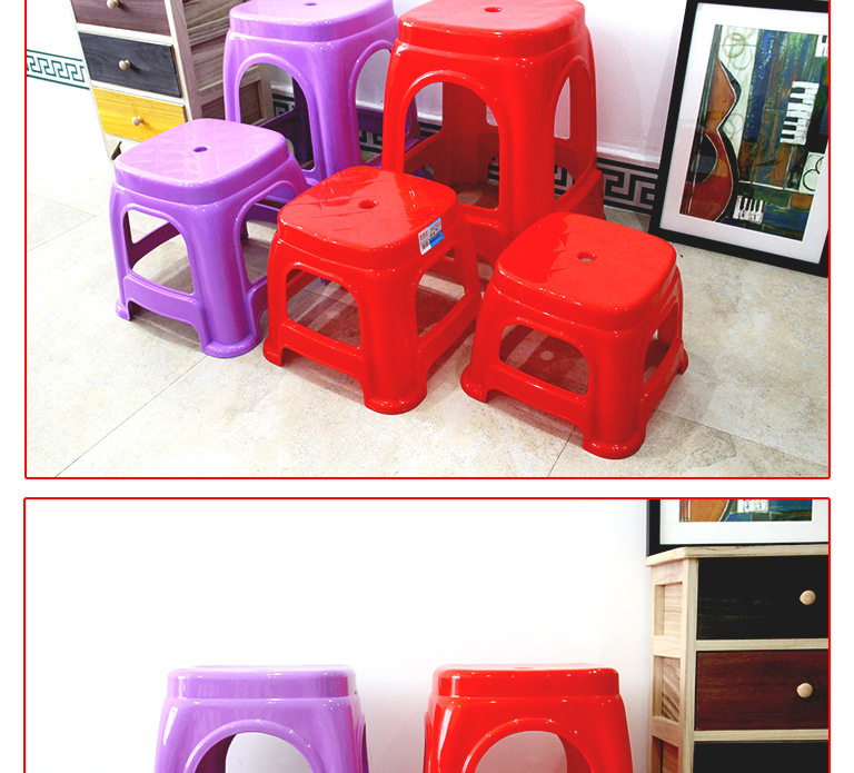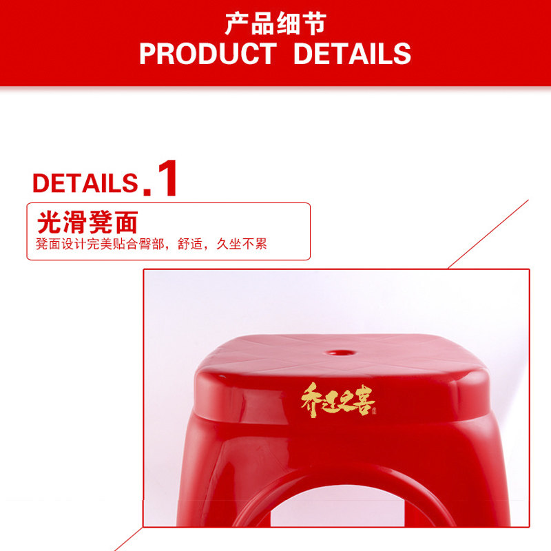 Утолщенный пластиковый табурет семейный дом перемещает новую домашнюю маленькую табуретку без стекла, взрослый с низким содержанием табуретки свадебный табурет Свадьба красный