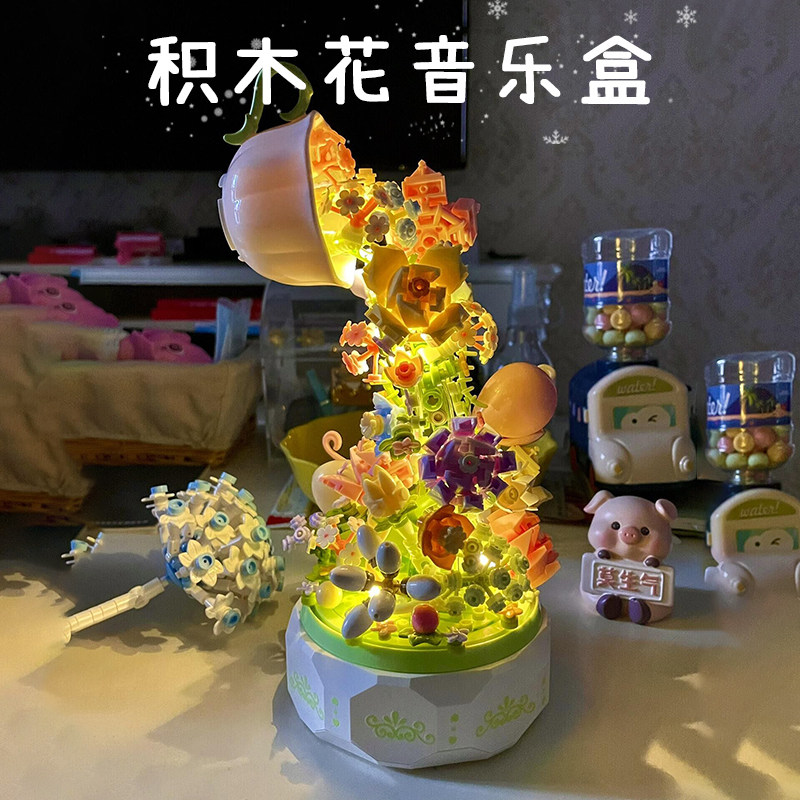Конструктор, ночник, подарок на день рождения, изысканный стиль, букет