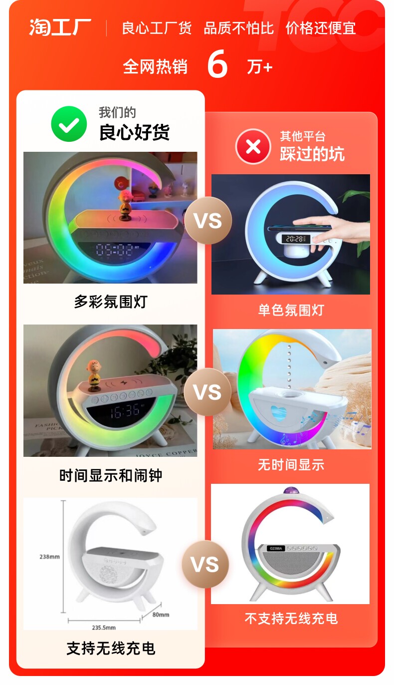| Цвет: | Верхняя модель: дисплей+изображение+будильник+беспроводной заряд+13 цветовой ночной свет+большой размер, Стандартная модель: без чисел+звук+будильник+беспроводной заряд+9 цветовой ночной свет+большой размер |