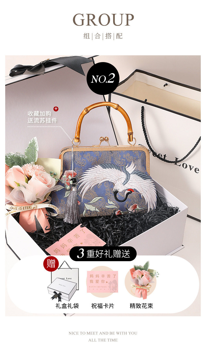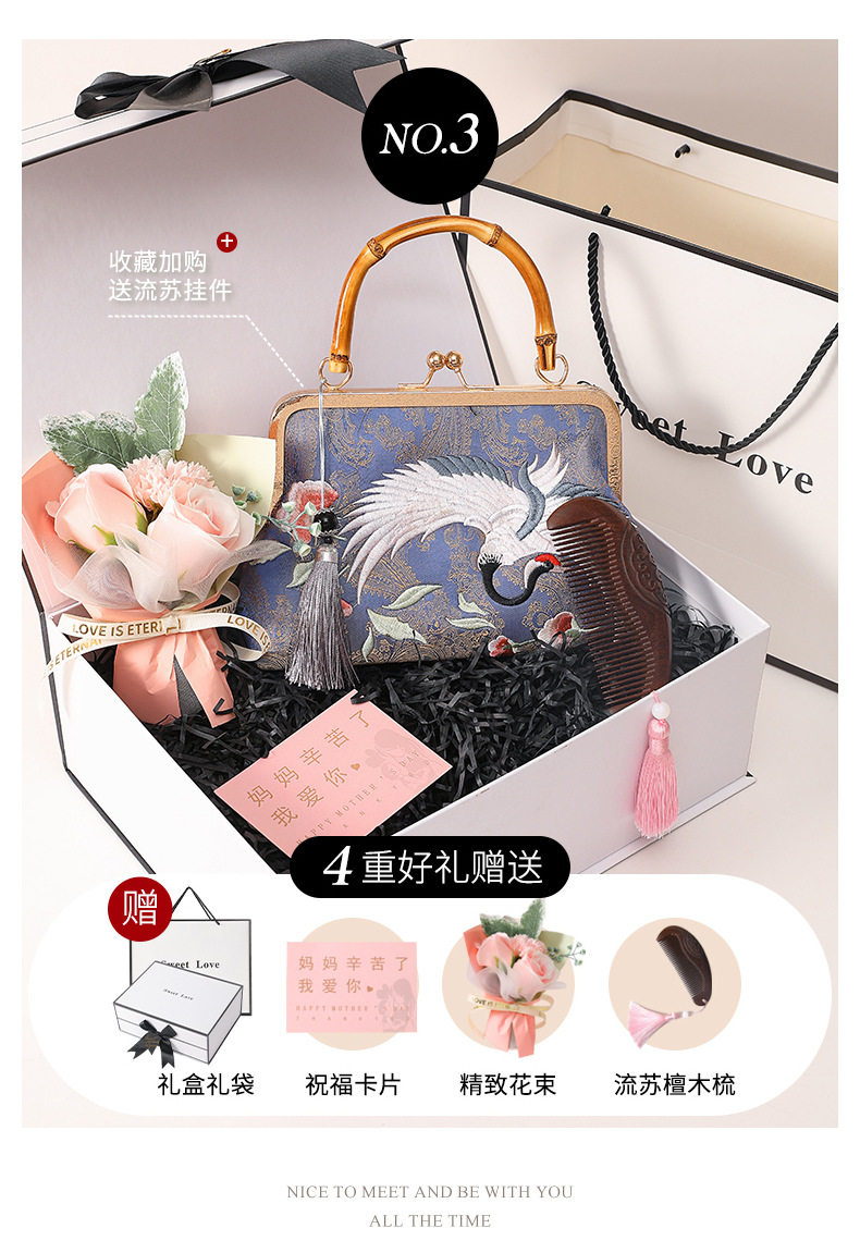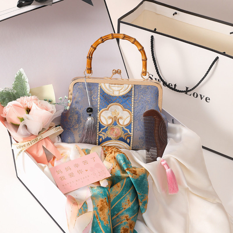 Подарочная коробка на день матери, комплект, сумка, подарок на день рождения, изысканный стиль, с вышивкой