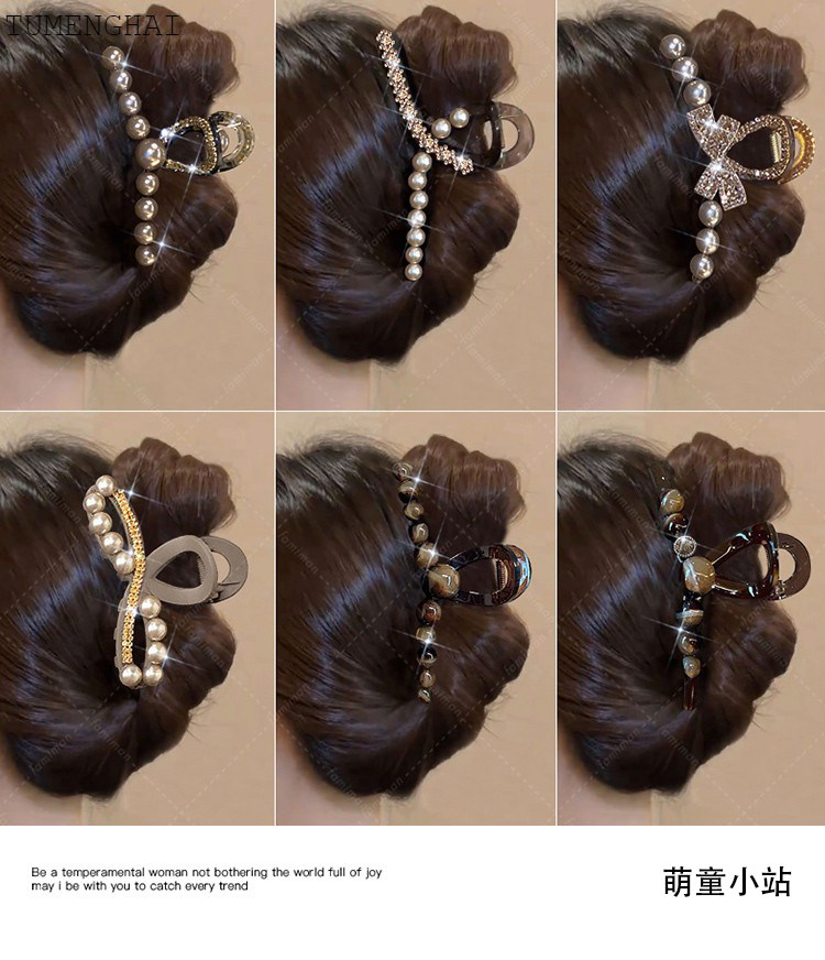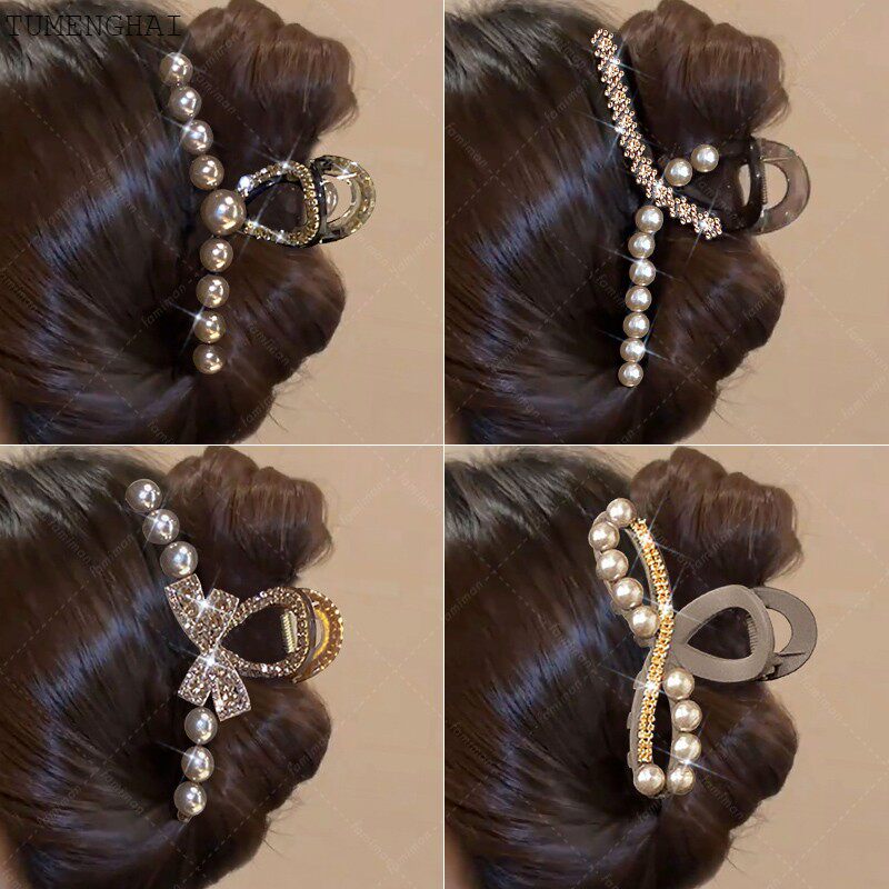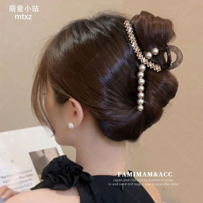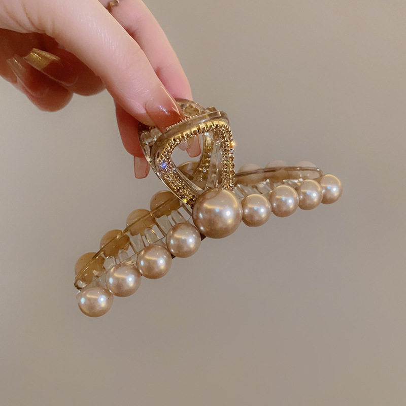 Большая заколка-крабик из жемчуга, заколка для волос, акула, аксессуар для волос, изысканный стиль, легкий роскошный стиль, французский стиль