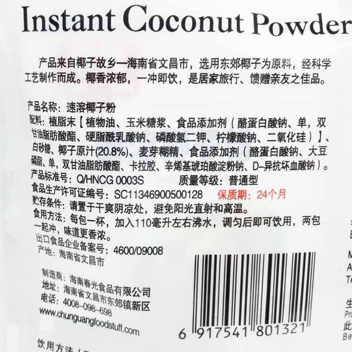 Кокосовый порошок Chunguang быстрого приготовления, 340 г, в пакетиках, фирменный Хайнань, очень крепкий и мягкий порошок кокосового молока и кокосового сока, напиток послеобеденный чай